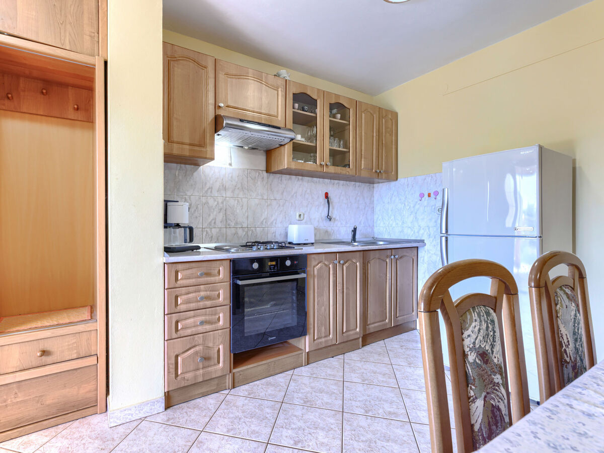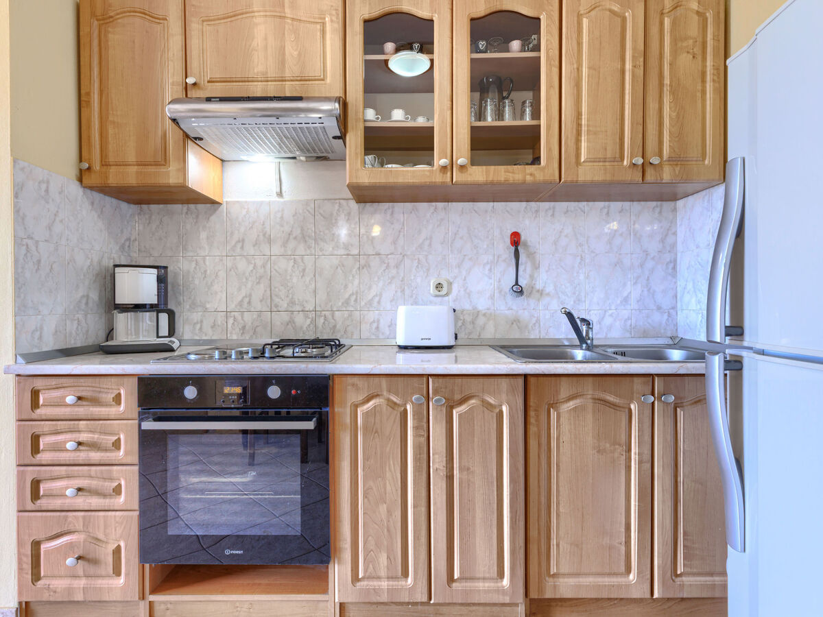 Cuisine ouverte (4 plaques de cuisson, four, grille-pain, bouilloire électrique, micro-ondes, congélateur, cafetière électrique).