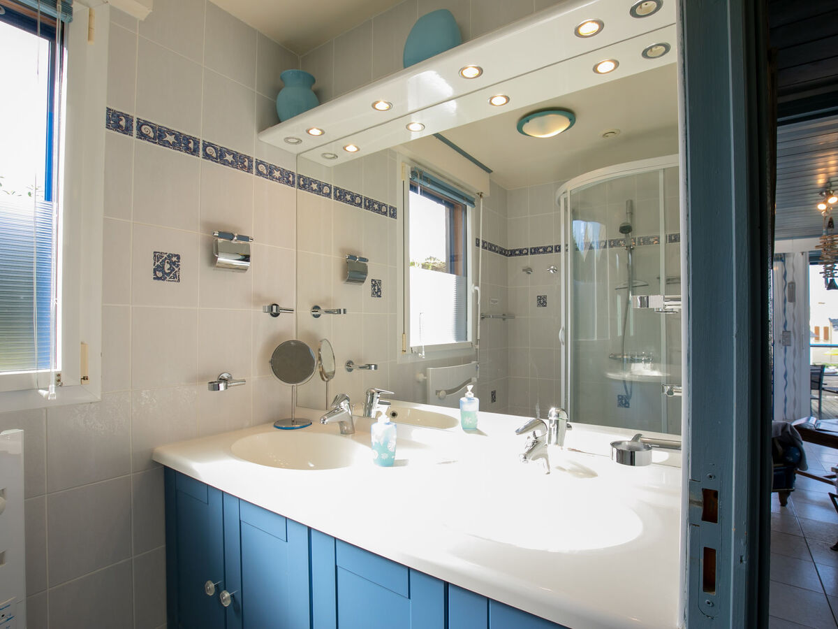 Douche, WC séparé, double vasque.