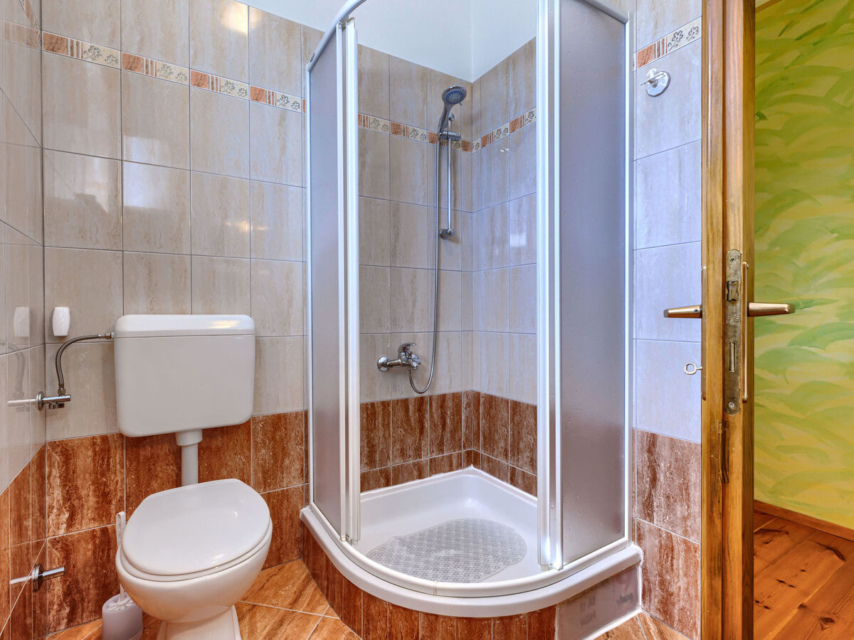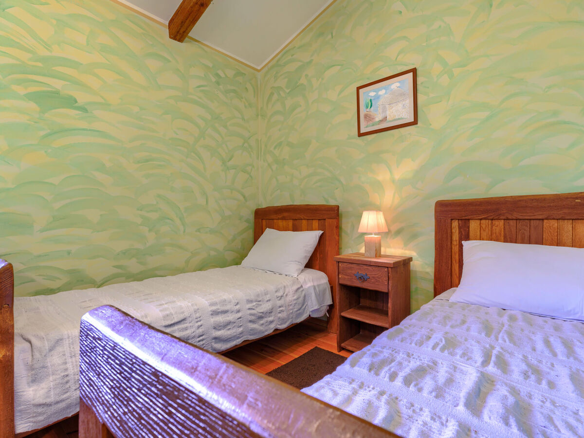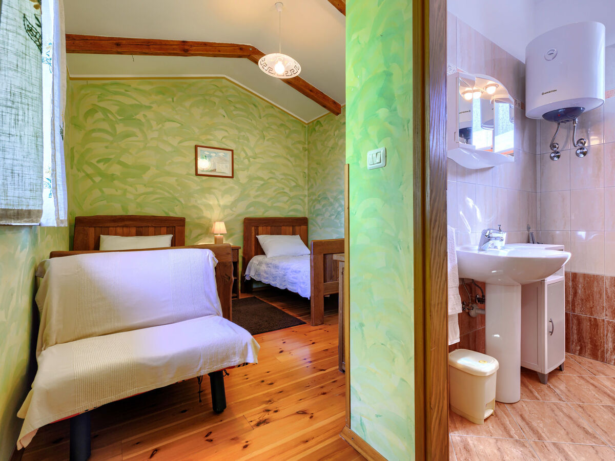 1 chambre avec 2 lits (90 cm, longueur 200 cm), 1 lit pliant (80 cm, longueur 200 cm), douche/WC.