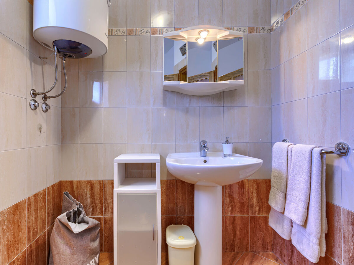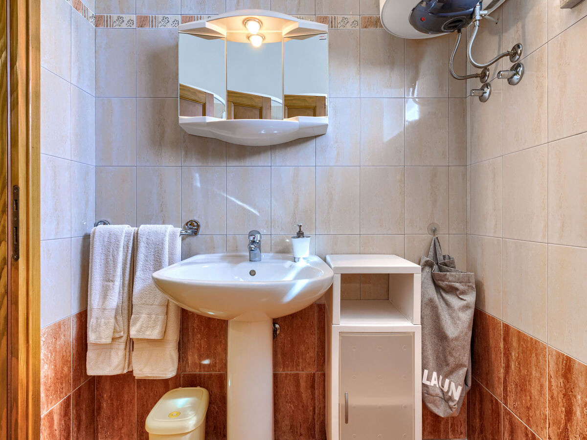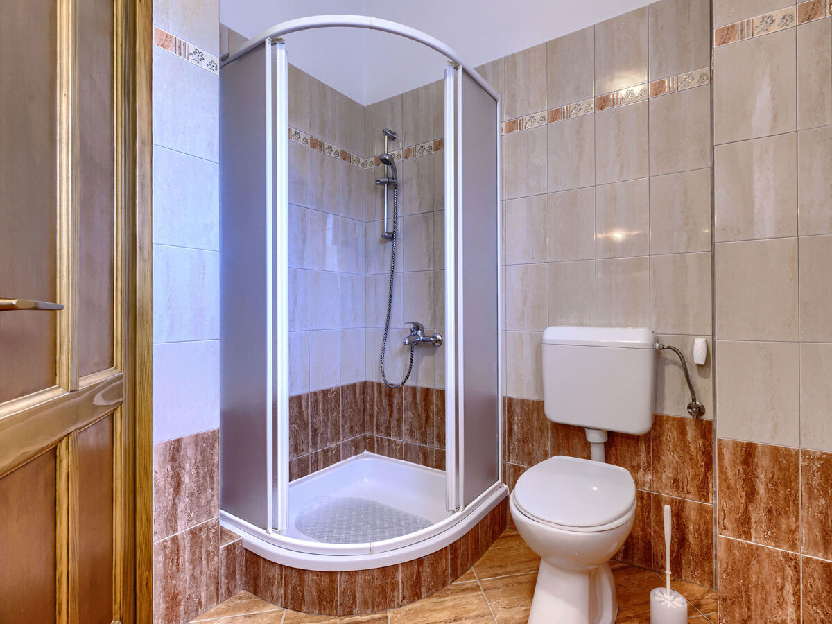 1 chambre avec 2 lits (90 cm, longueur 200 cm), 1 lit pliant (80 cm, longueur 200 cm), douche/WC.