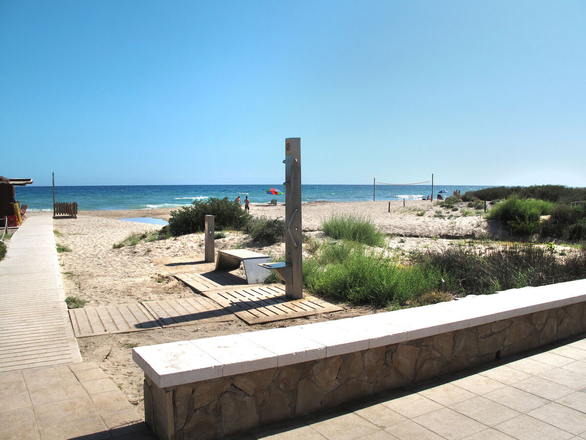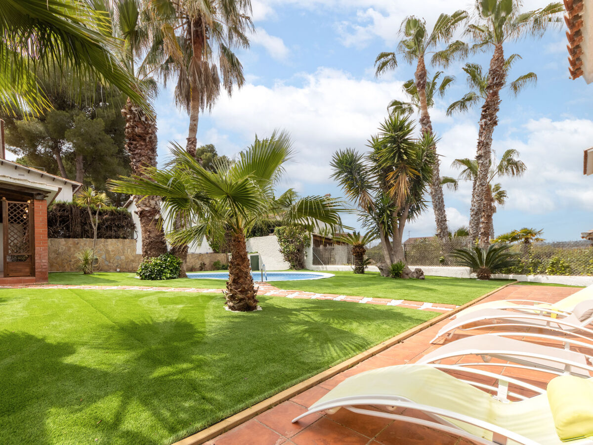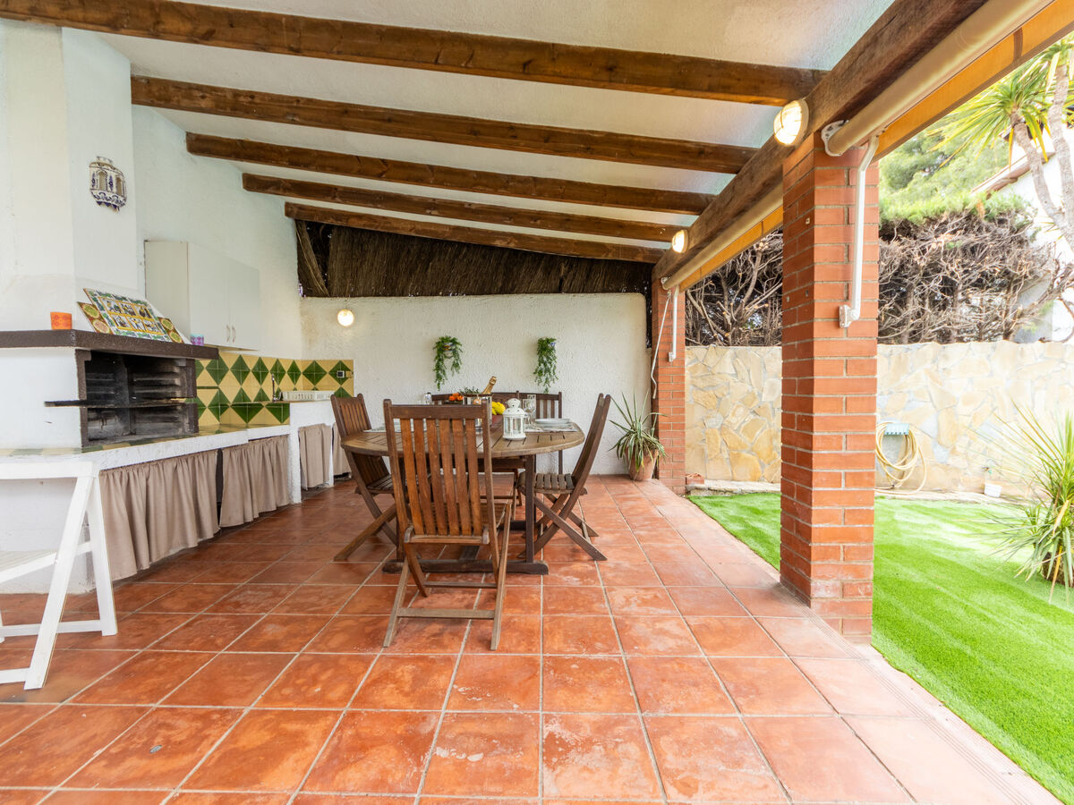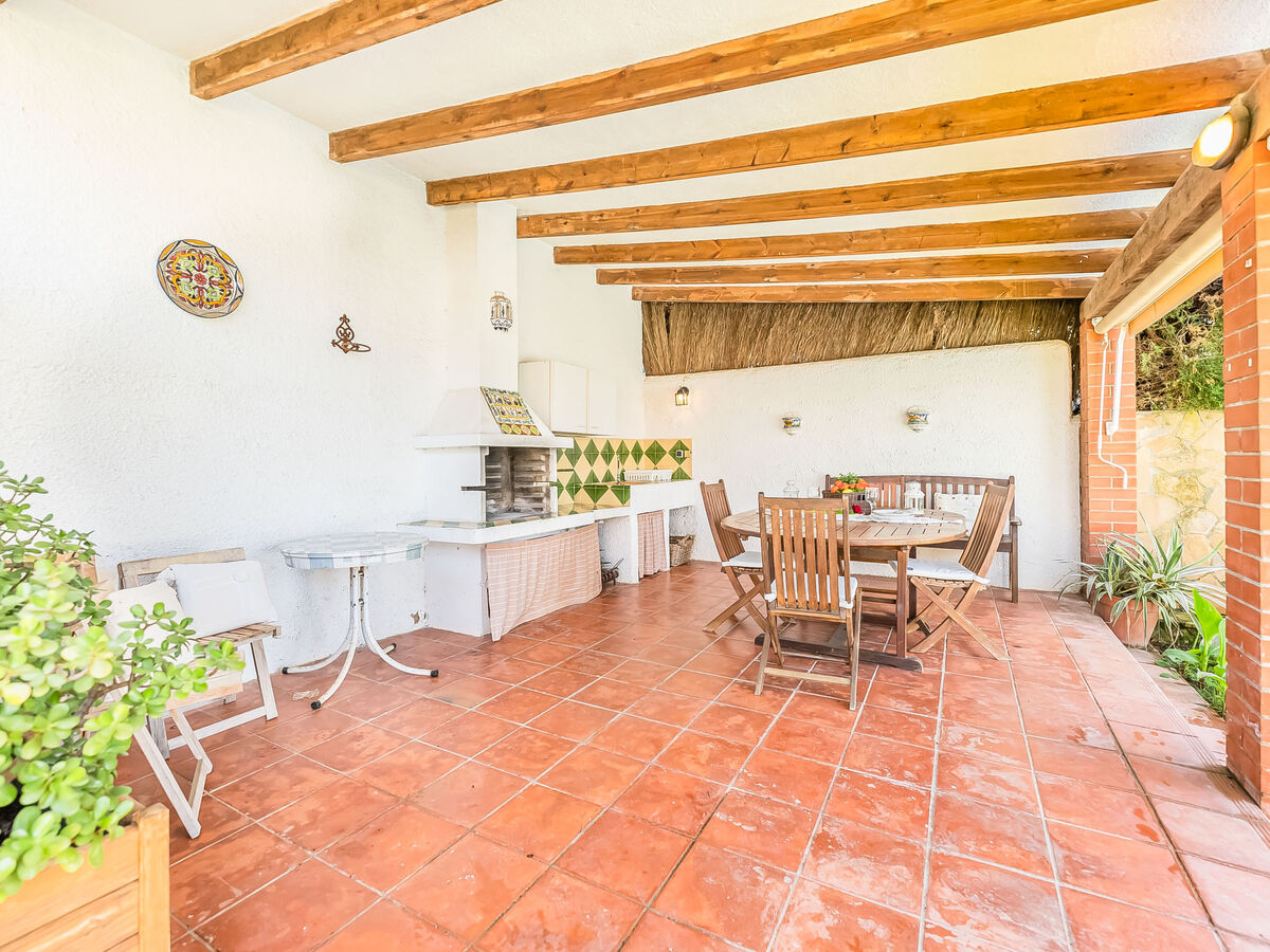 À l’extérieur, on peut profiter d’une terrasse couverte de 4 m² et meublée. Le terrain sur lequel est construite cette villa de vacances fait 600 m². Il est complètement gazonné et plusieurs palmiers y poussent. Un pool house est aussi mis à disposition, ainsi qu’un barbecue bâti en dur.