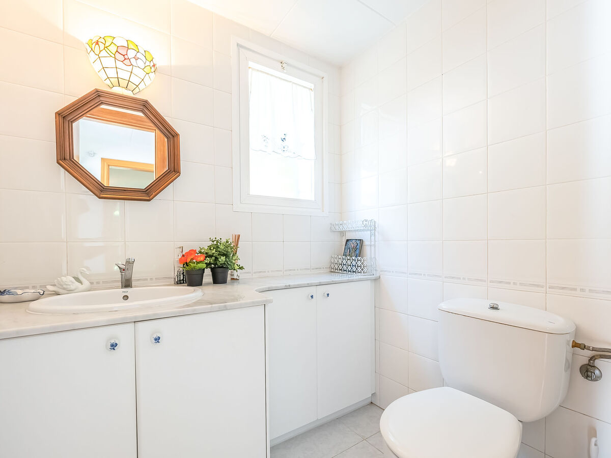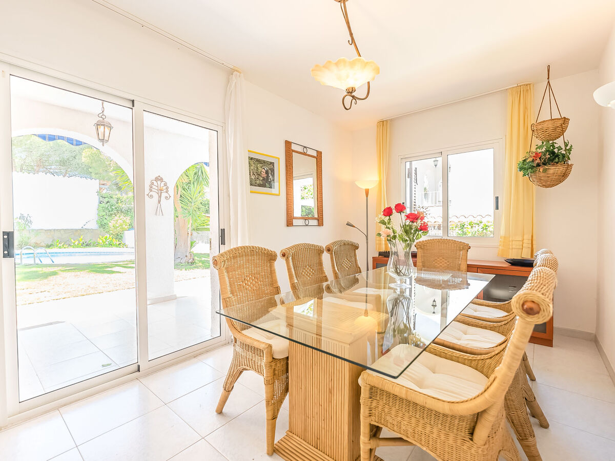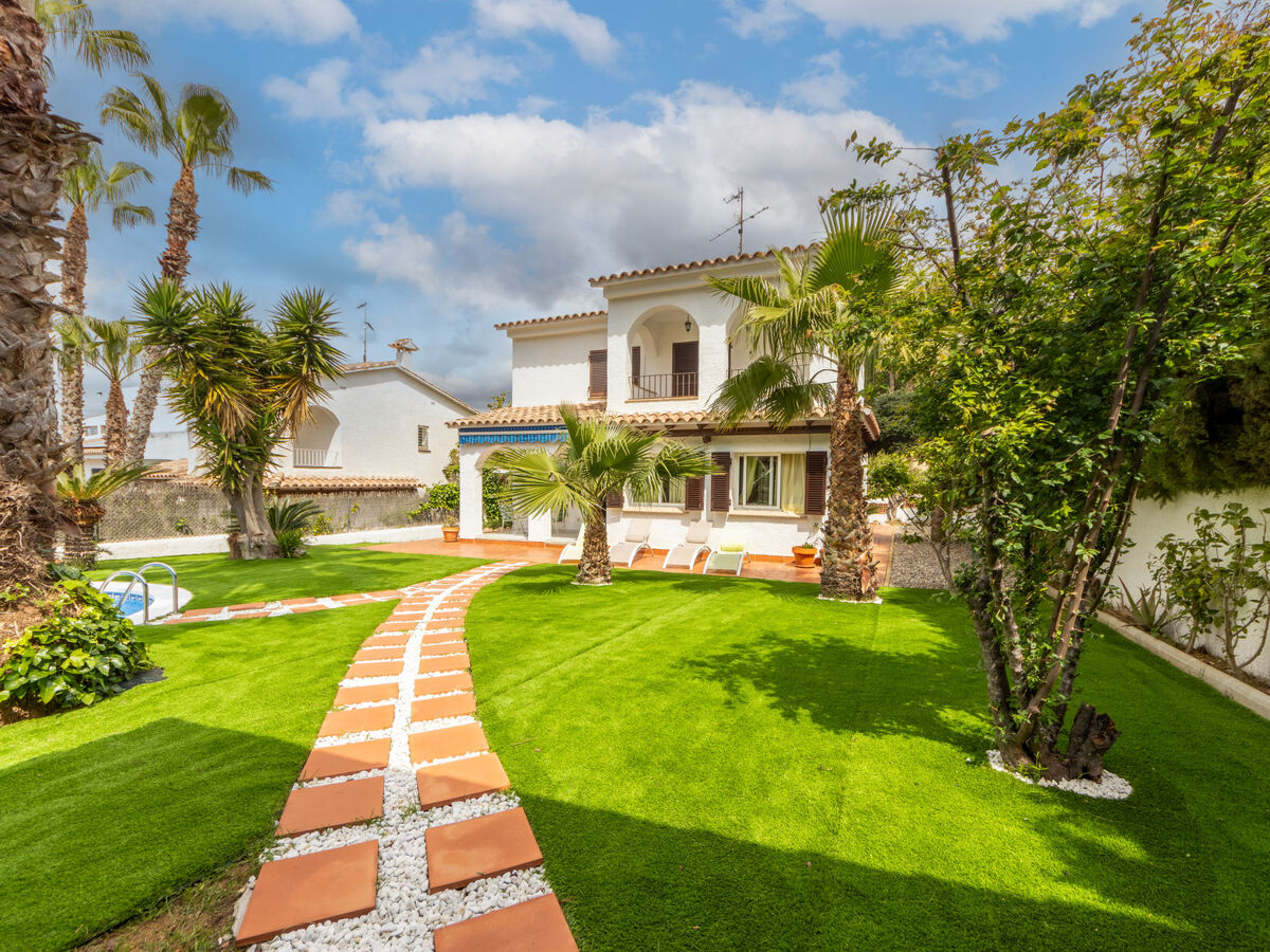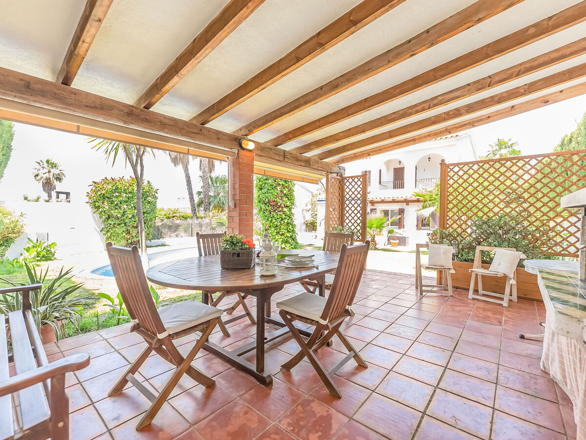À l’extérieur, on peut profiter d’une terrasse couverte de 4 m² et meublée. Le terrain sur lequel est construite cette villa de vacances fait 600 m². Il est complètement gazonné et plusieurs palmiers y poussent. Un pool house est aussi mis à disposition, ainsi qu’un barbecue bâti en dur.