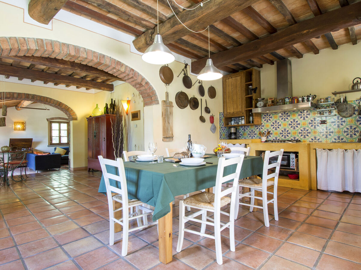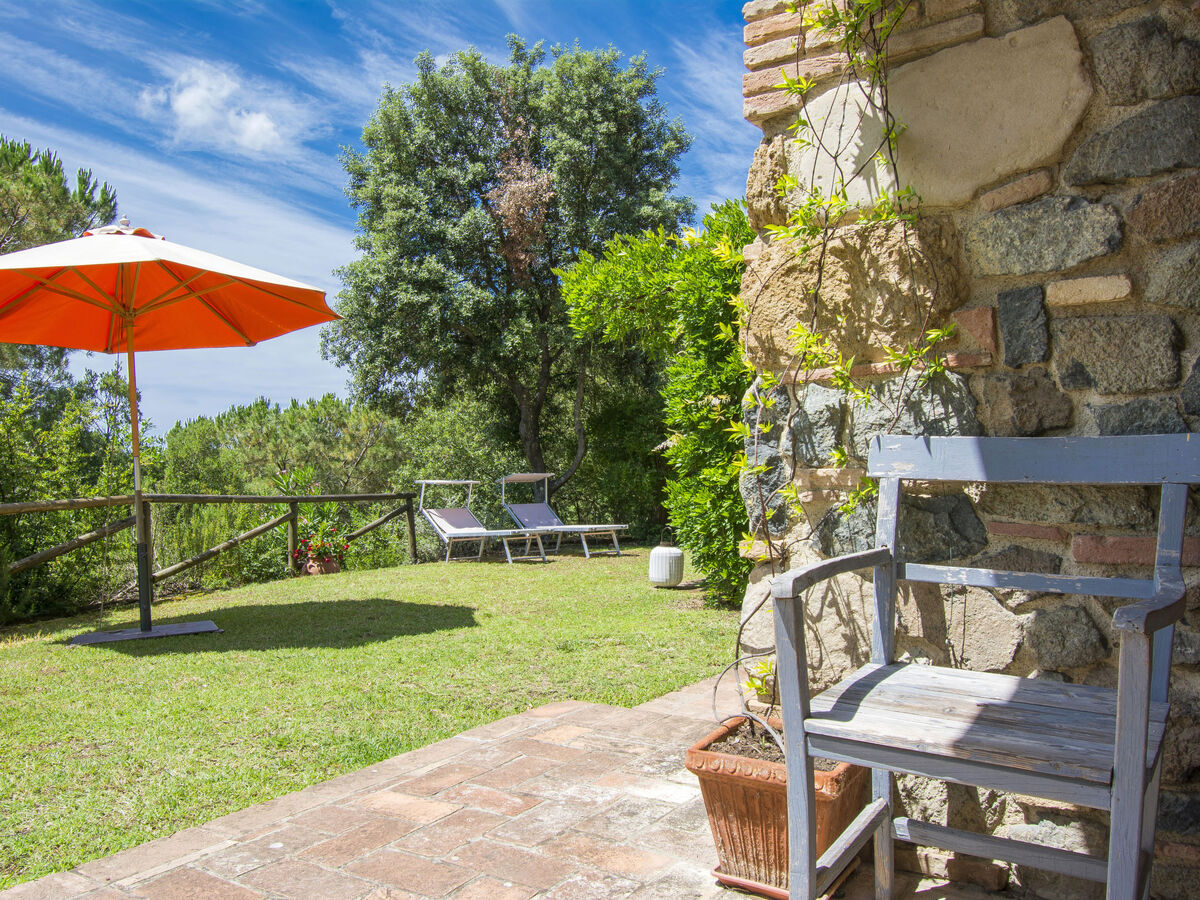 À l’extérieur, un parking est accessible sur un terrain non clos composé d’une prairie et de quelques champs. Une terrasse couverte est équipée de meubles de jardin, d’un barbecue et d’un four à pizza. Aux alentours, une plage de sable se situe à environ 16 km. Pour faire les courses, le supermarché de Cecina se trouve à 13,5 km. Le centre-ville est seulement à environ 6,5 km.