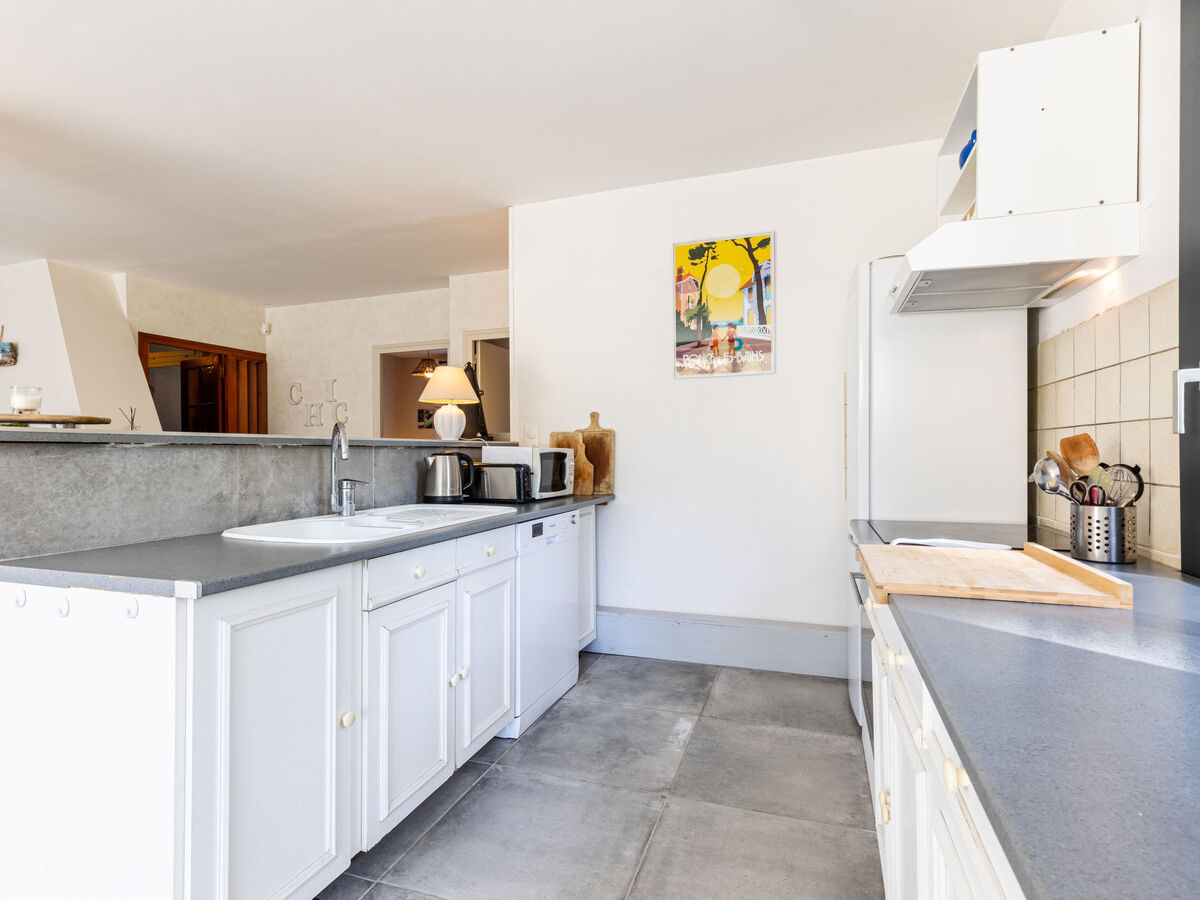 Cuisine ouverte (four, lave-vaisselle, 3 plaques à induction, grille-pain, bouilloire électrique, micro-ondes, congélateur, cafetière électrique, Capsules pour machine à café (Nespresso) (NON INCLUSES)).