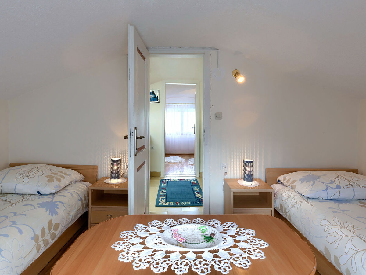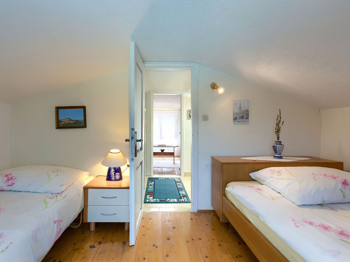 2 chambres, mansardées hauteur plafond 120 - 185 cm, chaque chambre avec: 2 lits.