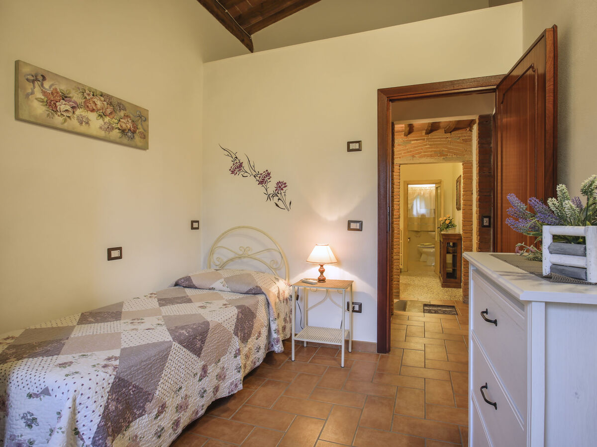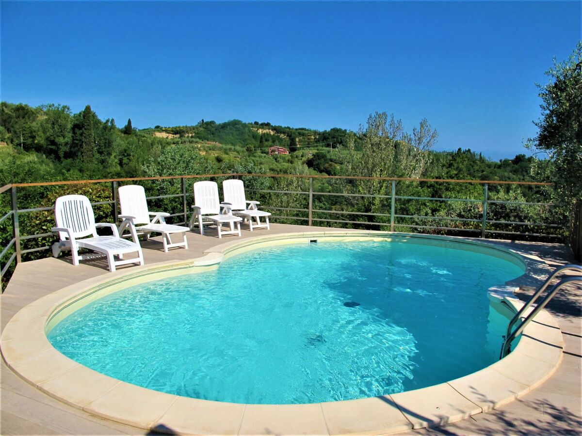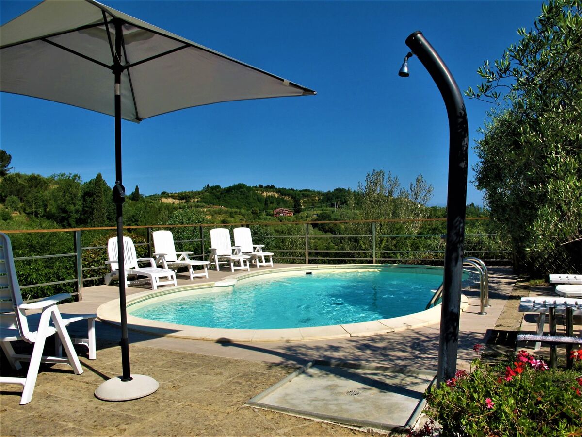« Rustico Lisena » est une charmante location saisonnière de 125 m² située à San Miniato, en Italie. Il s’agit d’une grande maison de campagne pouvant accueillir jusqu’à 9 vacanciers. Elle est établie à 250 m d’altitude et offre une vue panoramique sur la ville. Rénovée en 2012, cette maison à louer de deux étages dispose d’une piscine privée de forme libre à la disposition des locataires durant leur séjour. Elle comporte 6 pièces qui sont réparties comme suit :