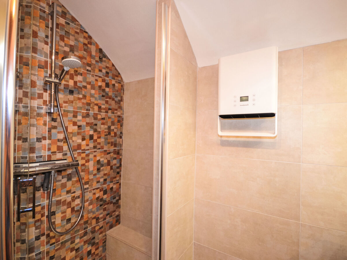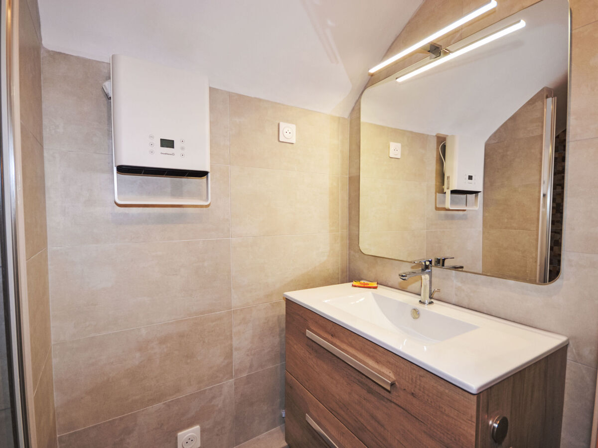 À l'étage supérieur: (escalier raide) 1 chambre avec 1 lit (90 cm, longueur 190 cm), 1 grand-lit (140 cm, longueur 190 cm).