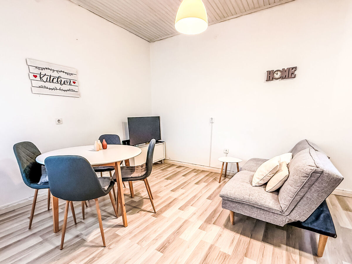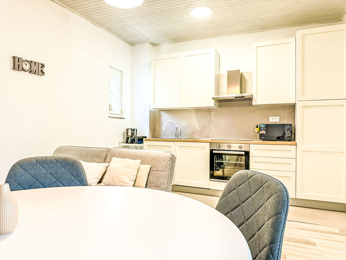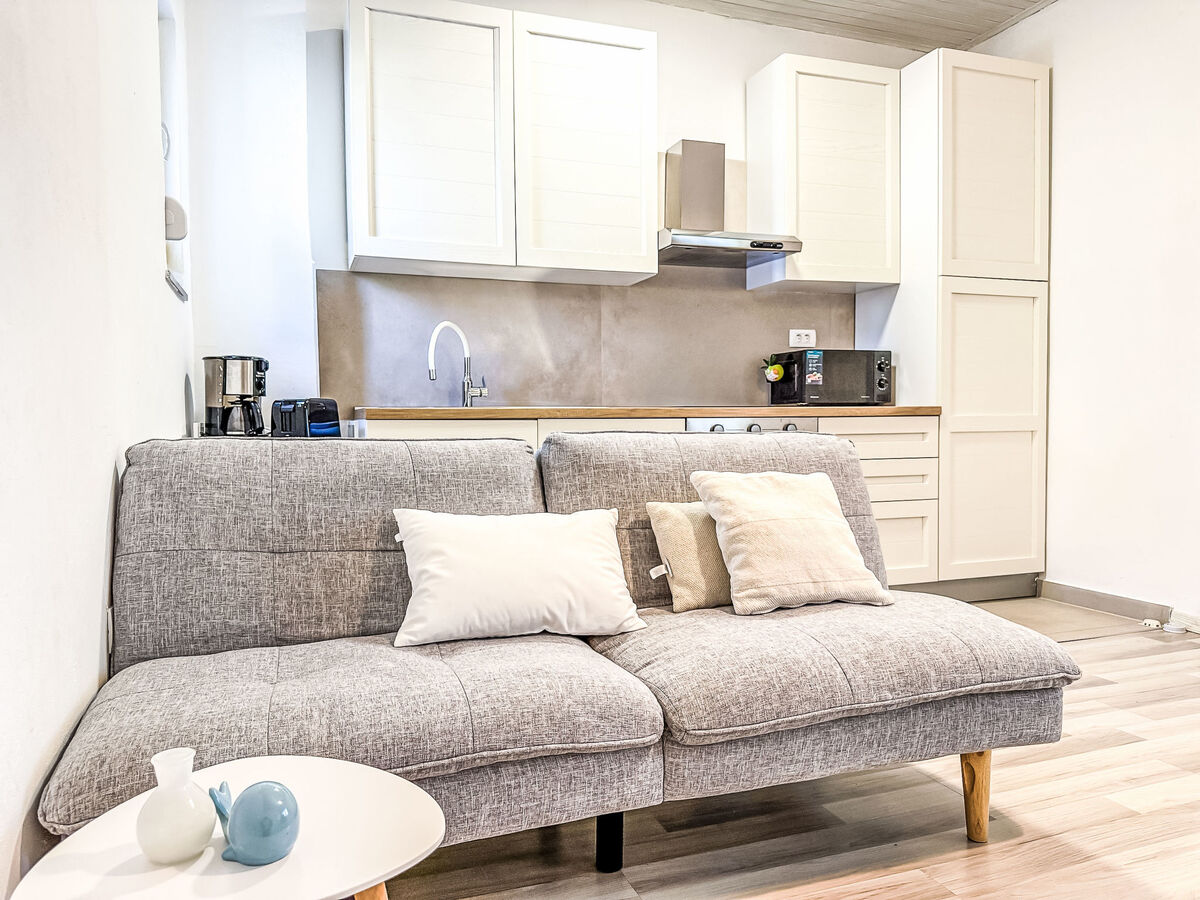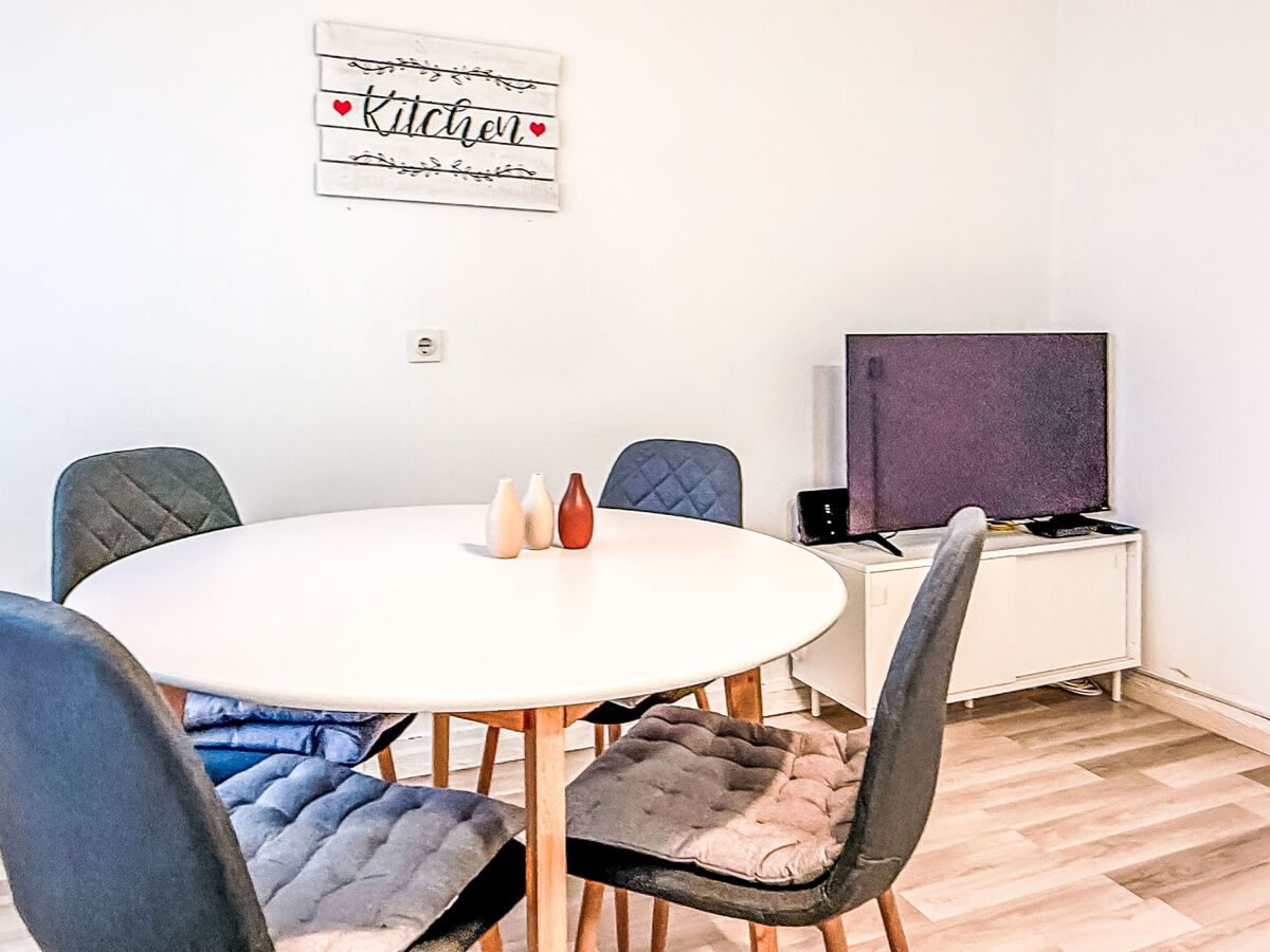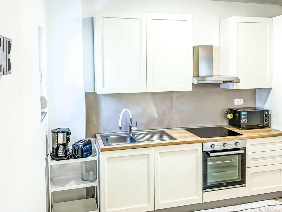 Cuisine ouverte (four, lave-vaisselle, 4 plaques vitrocéramiques, grille-pain, bouilloire électrique, micro-ondes, congélateur, cafetière électrique).