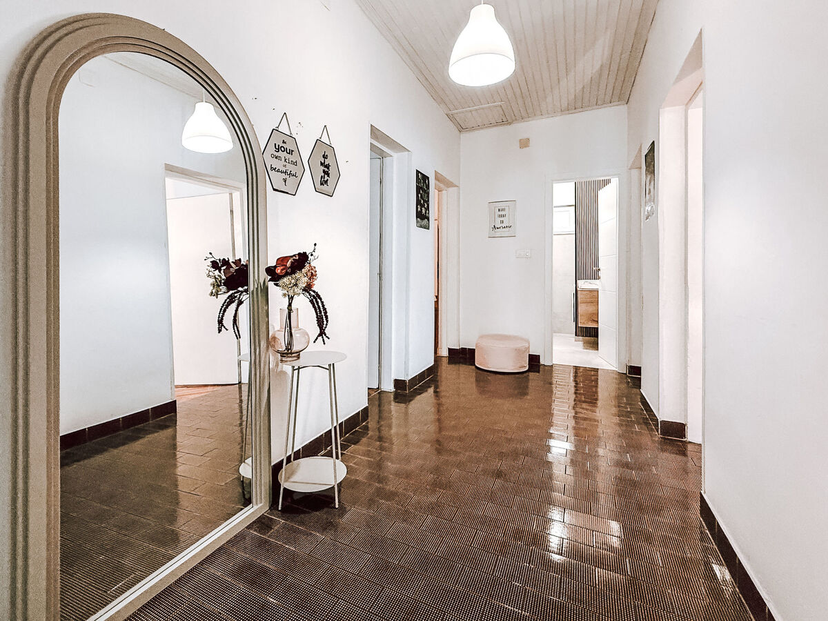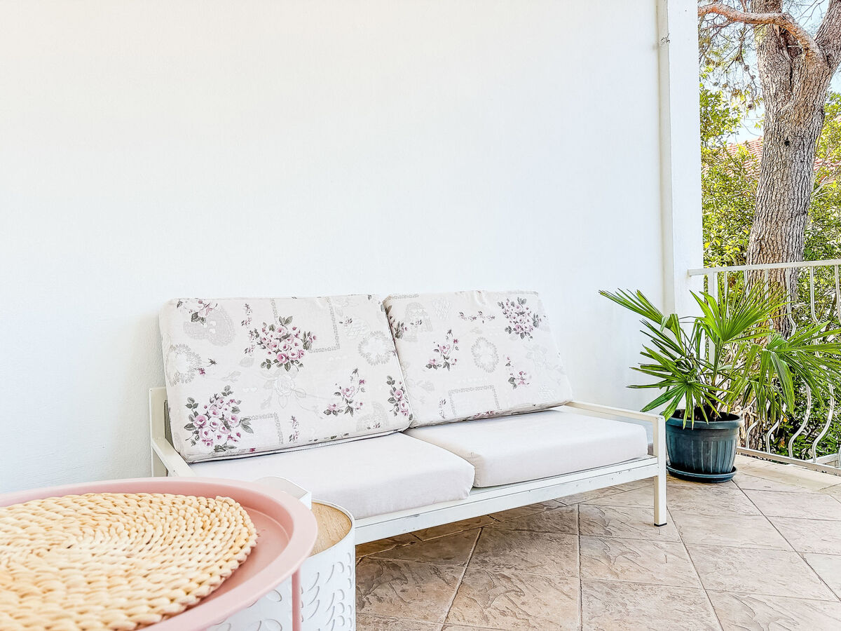 A usage privé: terrain 350 m2 (clôturé), jardin avec plantes et arbres.