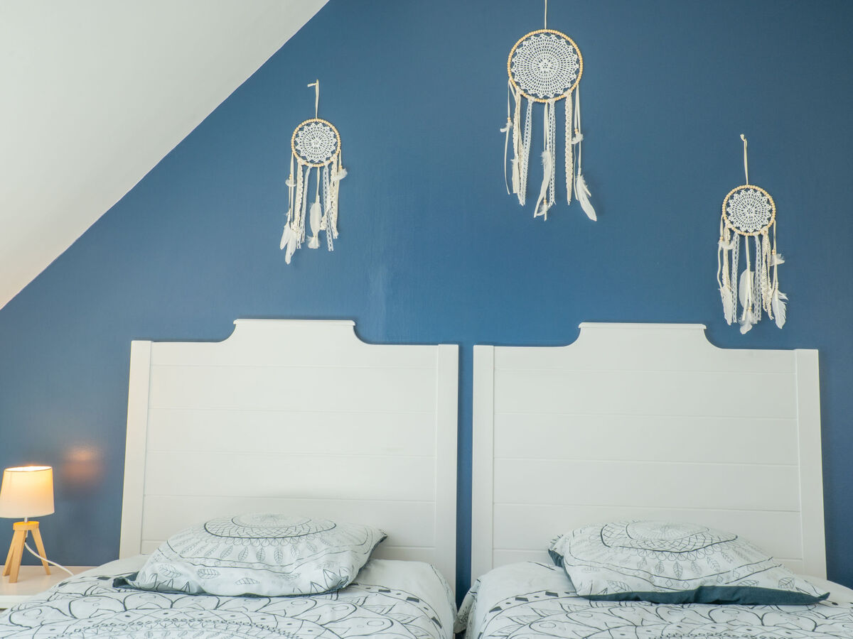 1 chambre, mansardée avec 1 grand-lit (160 cm, longueur 200 cm), 1 lit gigogne (2 x 90 cm, longueur 190 cm).