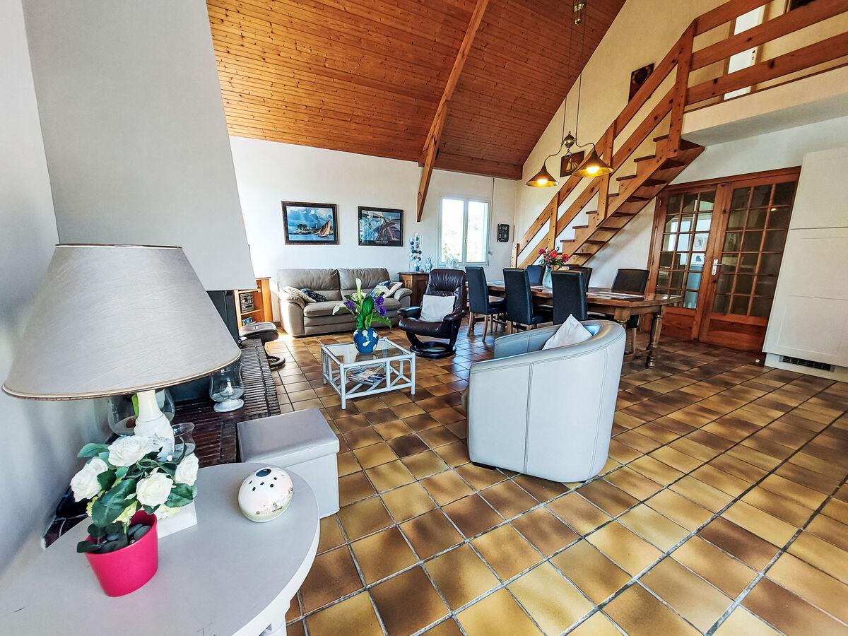 Aménagement agréable et plaisant: séjour/salle à manger avec cheminée (uniquement à titre de décoration), table pour les repas, TV (satellite) et DVD.