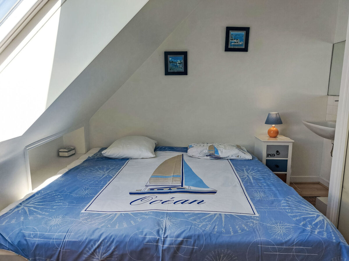 À l'étage supérieur: 2 chambres, mansardées, chaque chambre avec: 2 lits (90 cm, longueur 190 cm).
