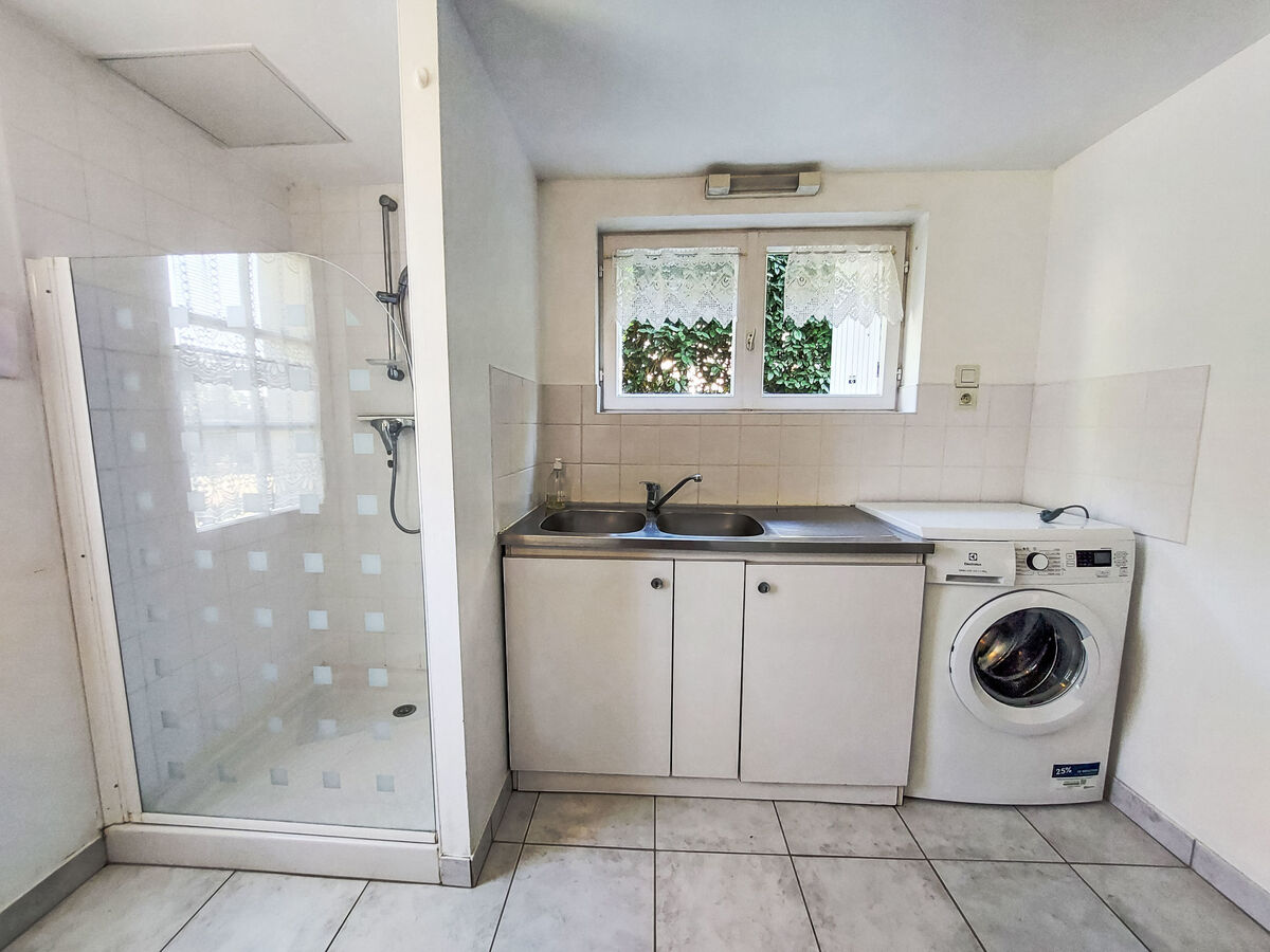 A disposition: lave-linge, sèche-linge, fer à repasser, chaise haute pour enfant, lit bébé.