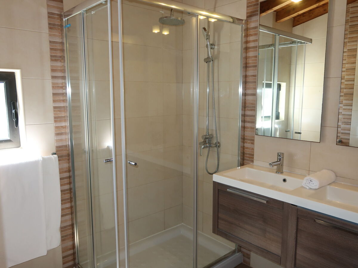À l’étage, la maison dispose de deux chambres supplémentaires équipées chacune de deux lits simples, ainsi qu’une salle d’eau. Pour agrémenter le séjour des vacanciers, une télévision satellite proposant des chaînes allemandes est installée. L’accès internet Wifi est disponible, sans supplément.
