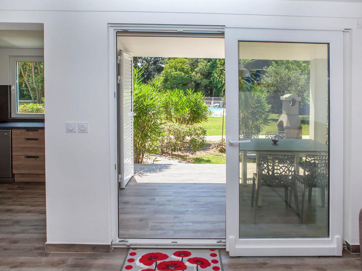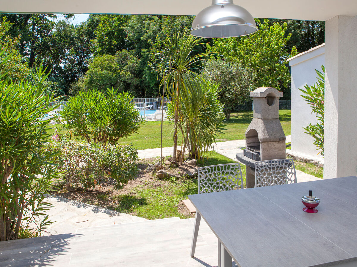 A l’extérieur, la maison est dotée d’une terrasse couverte avec des meubles de jardin et un barbecue destinée à un usage privatif.