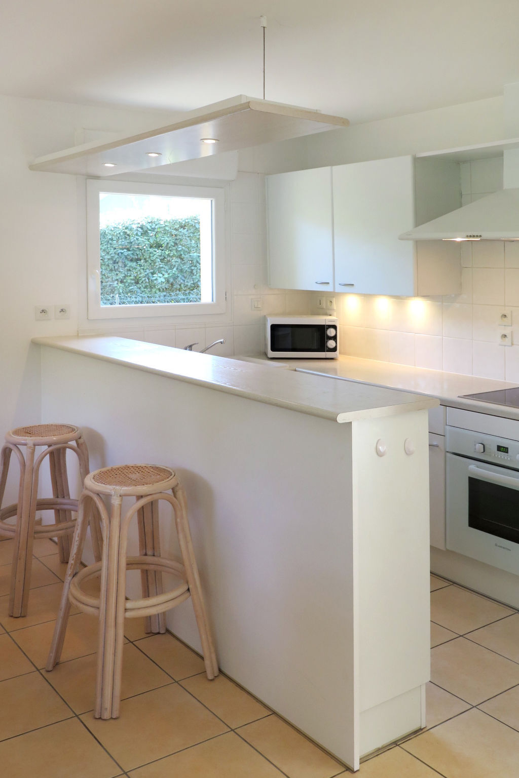 Cuisine ouverte (four, lave-vaisselle, 4 plaques vitrocéramiques, grille-pain, bouilloire électrique, micro-ondes, congélateur, cafetière électrique).