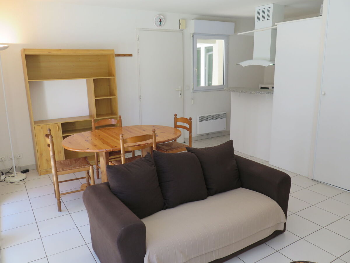 Aménagement agréable: séjour/salle à manger avec table pour les repas et TV (satellite).