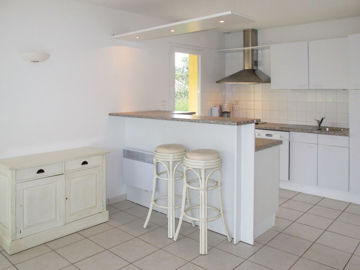 Cuisine ouverte (four, lave-vaisselle, 4 plaques vitrocéramiques, grille-pain, bouilloire électrique, micro-ondes, congélateur, cafetière électrique) avec bar.