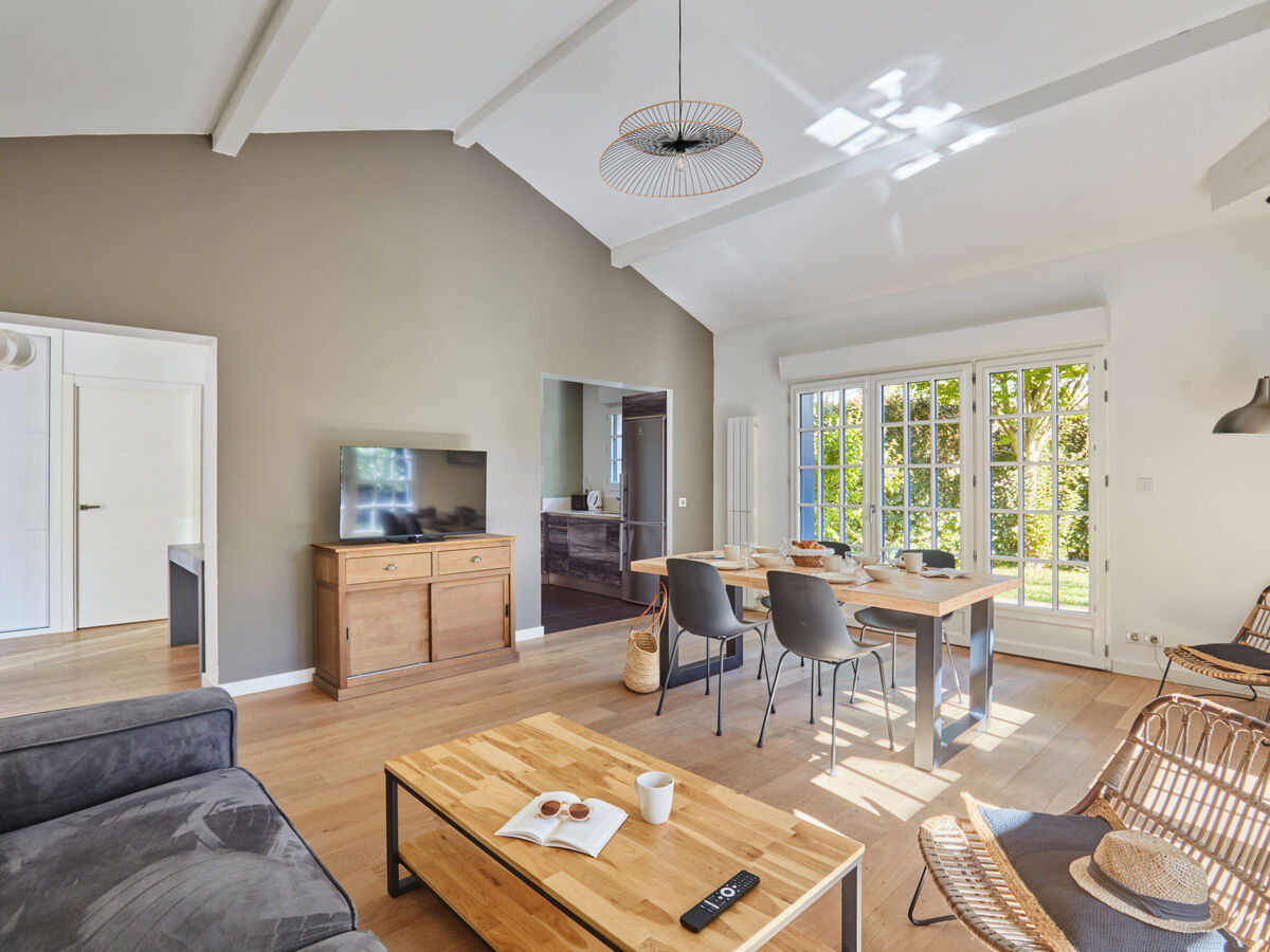 Aménagement moderne et de bon goût: séjour avec table pour les repas et TV (écran plat).