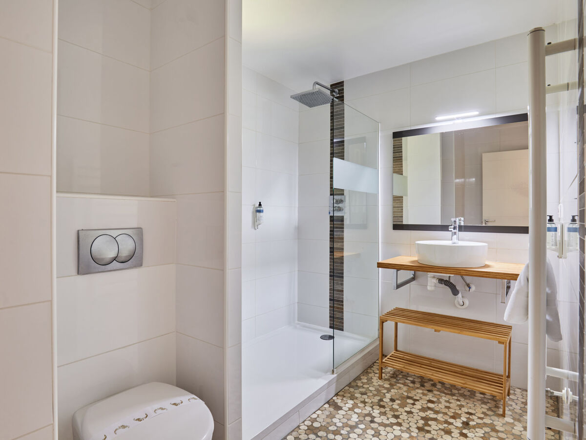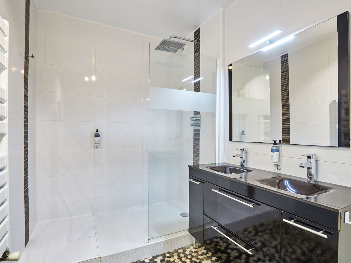 Douche, WC séparé, double vasque.