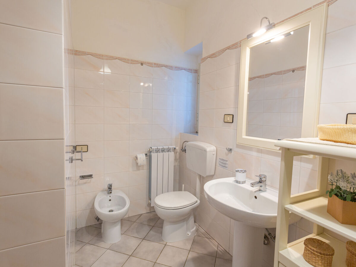 À l'étage supérieur: 1 chambre avec 1 lit et 1 grand-lit (160 cm), douche/WC.