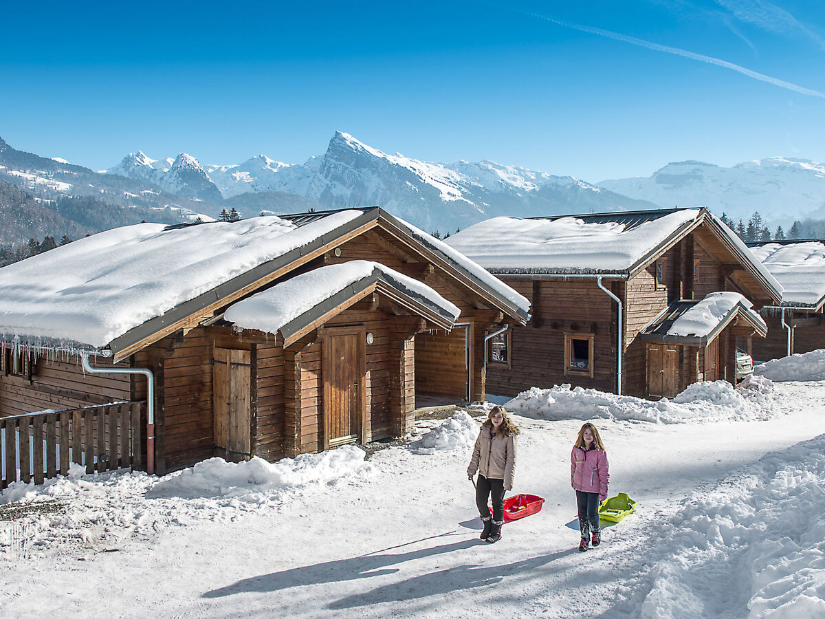 À 1.1 km du centre de Morillon, en bordure de la localité, à 4 km du centre de Samoens, sur un versant.