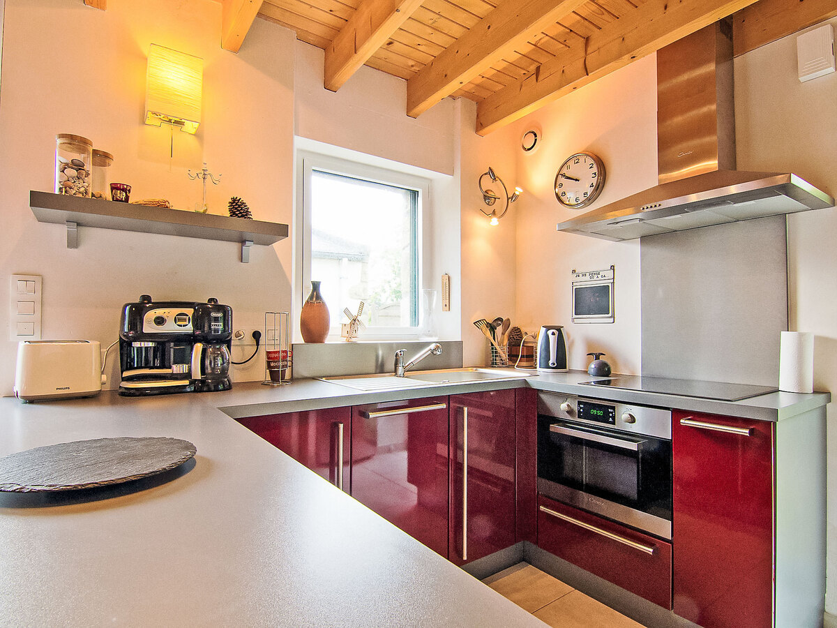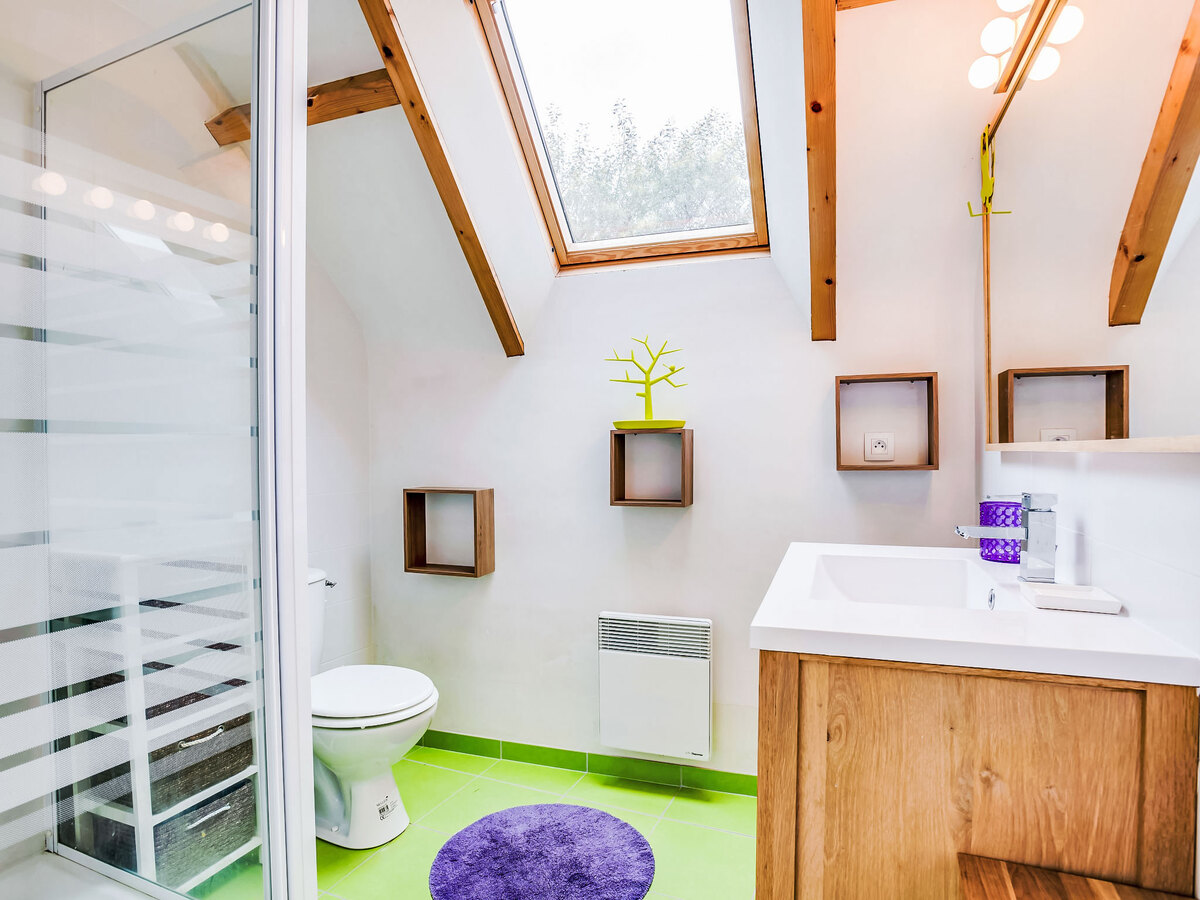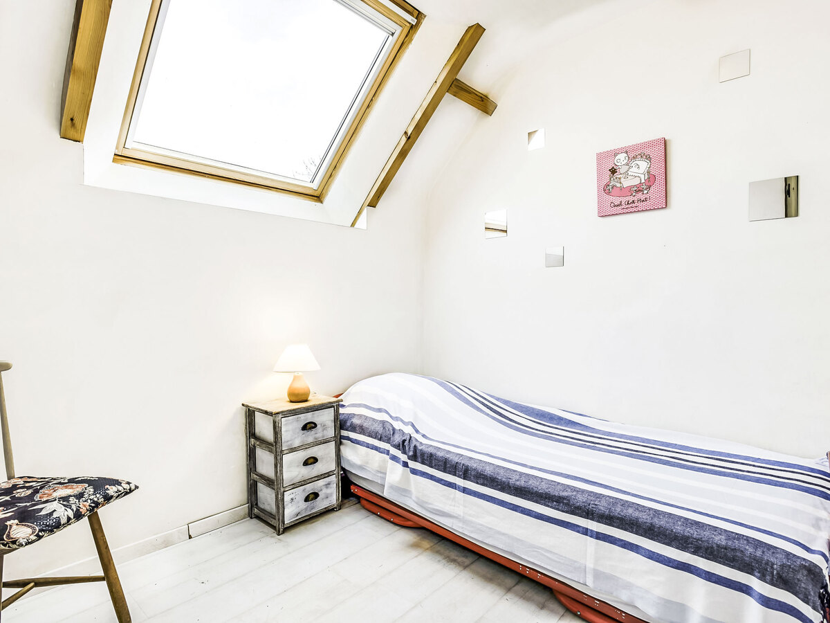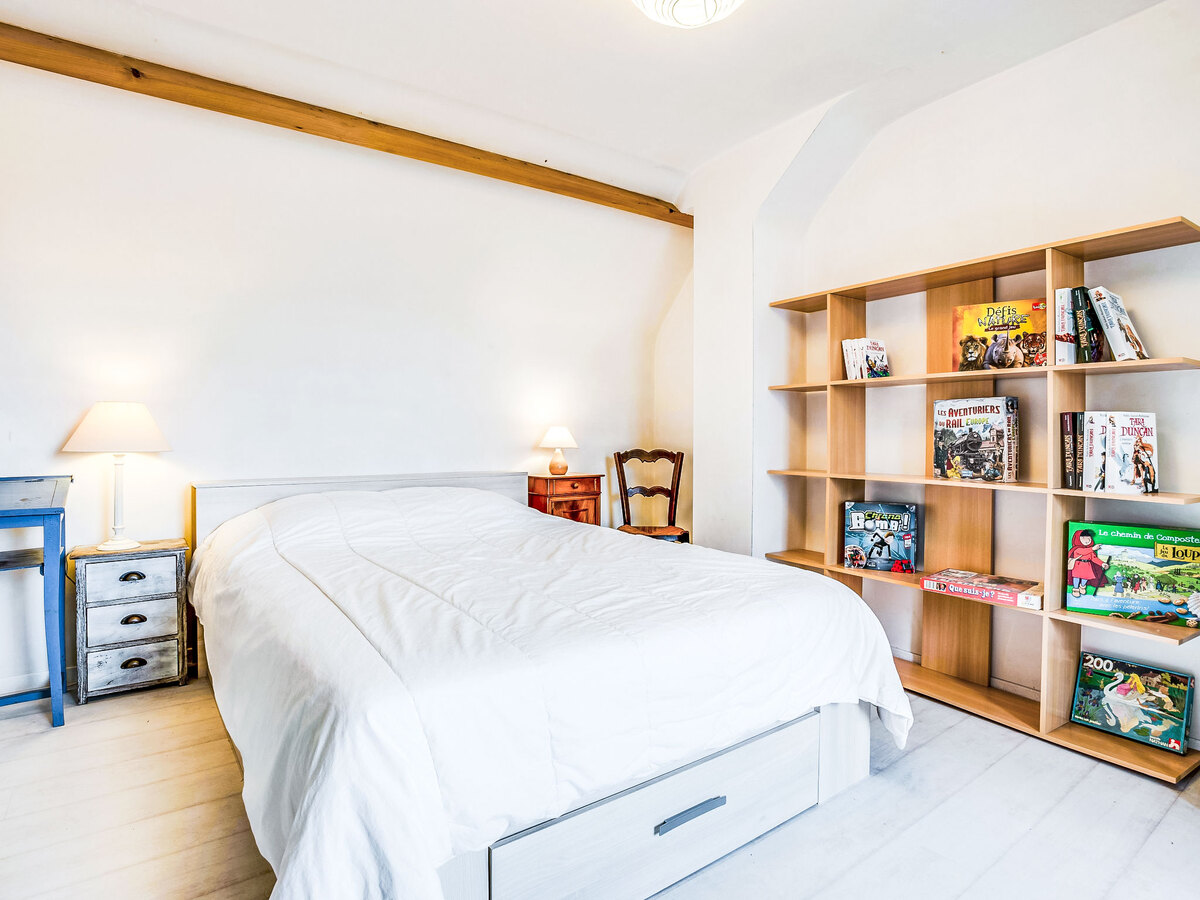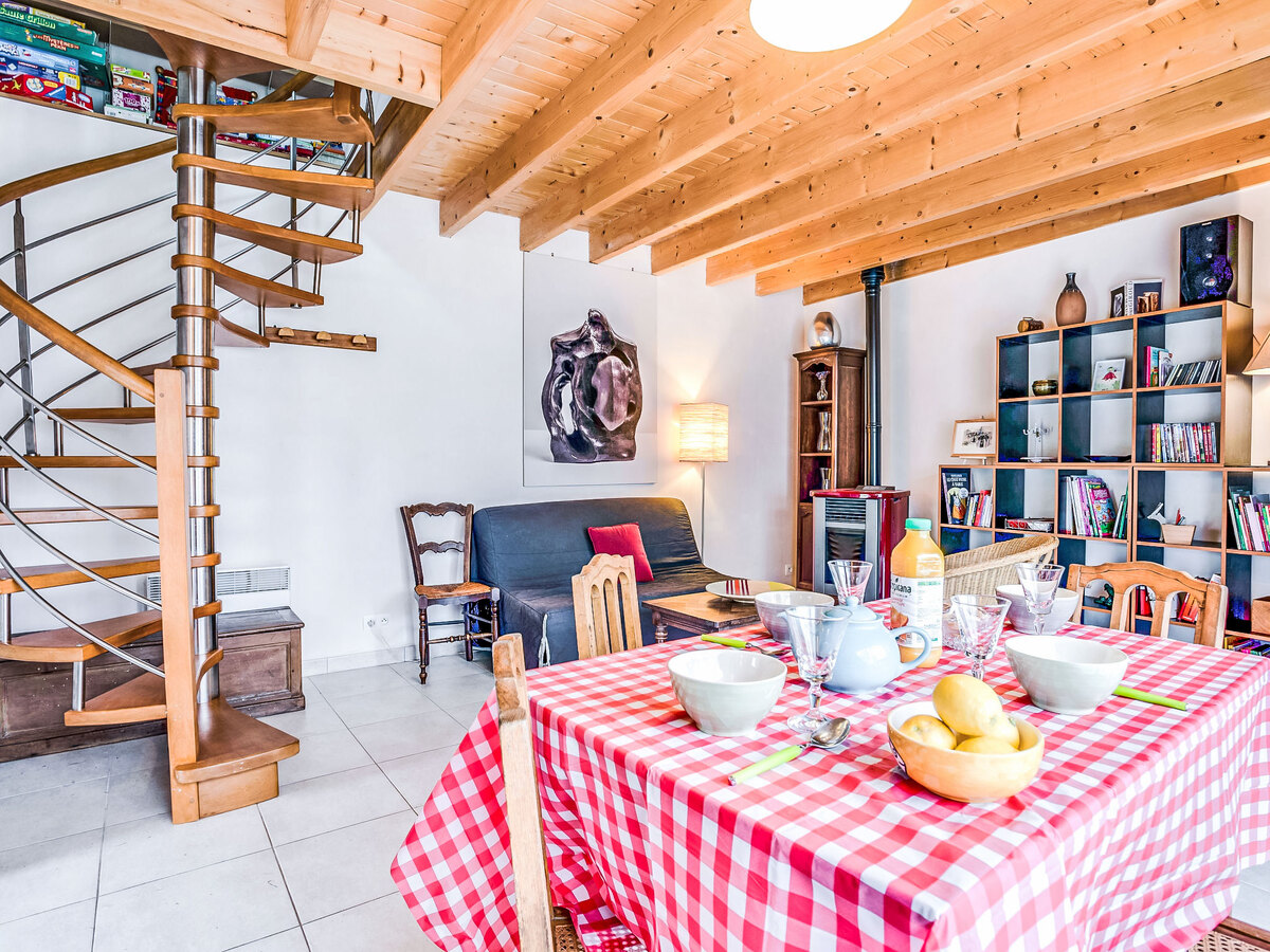 Construite sur deux étages, elle présente un séjour et une salle à manger avec un divan-lit, une chaîne stéréo et un poêle à bois. Quant à la cuisine, elle est équipée de 3 plaques de cuisson, un lave-vaisselle, un congélateur et un micro-ondes. A l'étage supérieur, la chambre avec son lit double (140 cm), sa télévision et son lecteur DVD est accessible par un escalier en colimaçon. La maison présente également une chambre d'enfants, mansardée avec un lit gigogne pour deux personnes. Vous disposez aussi d'une douche/WC.