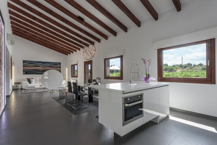 Cette maison spacieuse à Majorque est situé dans la partie haute de la ville, avec des vues exceptionnelles sur la Sierra de Tramontana. La propriété a rénové récemment et c'est distribué en trois hauteurs. La partie extérieure est divisée en deux zones; une zone avec une grande terrasse avec barbecue, et un autre zone contient un jardin et une piscine. Ces deux éléments permettent de privacy pour vous, car la maison ne dispose pas de voisins de chaque côté, et la plage est à seulement 15 minutes à partir de maison.