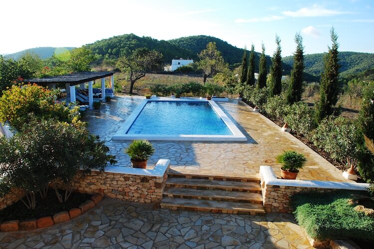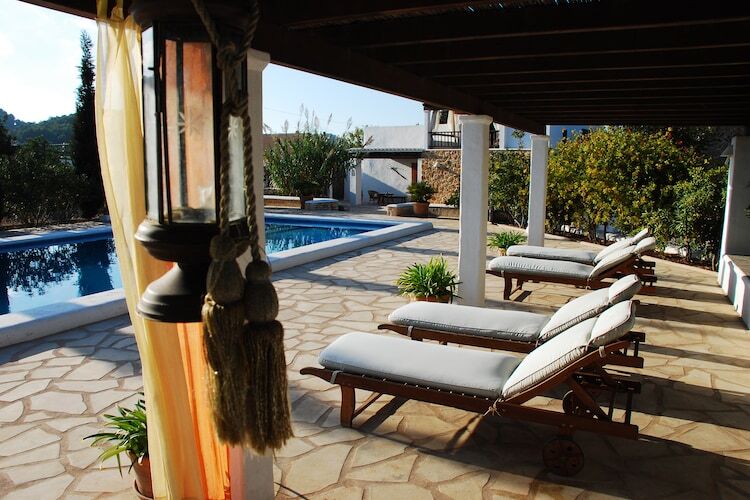 Palau Can est une finca unique avec une grande terrasse en pierre naturelle avec piscine (10 x 4 m), une zone couverte avec chaises longues et un coin salon avec cuisine extérieure et barbecue. Il existe également un étang. Grâce à une entrée automatique beeikt la villa, qui est à distance de marche du village de San José avec ses bars, restaurants et magasins. Dans la région, vous trouverez les belles plages de Cala Jondal, La Cala Virgen et Es Torrent. La villa Can Palau se trouve à environ 15 km de la ville d'Ibiza. La plage est à environ 7 km de Can Palau.Via les doubles portes vous entrez dans le salon rustique avec canapé en forme de L, cheminée, TV par satellite et un accès Internet WiFi. La cuisine ouverte dispose d'un bar et d'une cheminée et est équipée d'une cuisinière, micro-ondes, lave-vaisselle et réfrigérateur-congélateur. La salle à manger dispose d'un système de musique. Dessus de la cuisine est un petit coin salon. De la salle de séjour un escalier mène à la chambre des maîtres confortable avec lit double, TV et climatisation. La chambre est équipée de beaux meubles anciens. De la chambre vous avez accès à la terrasse de toit et une salle de bains privative avec douche et WC. En bas se trouvent deux chambres avec deux lits simples et un sl