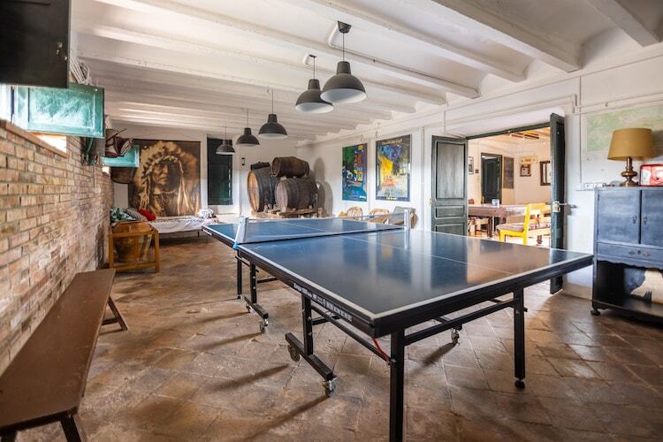 Rez-de-chaussée: (hall d'entrée, Salle de séjour(Canapé-lit simple, TV, Lecteur DVD, installation stéréo), salle à manger(table, chaise haute), cuisine(cheminée, hotte, four(grill), four/micro-onde combinés, lave-vaisselle , congélateur, lave-linge ), salle de bains(douche, lavabo, WC, bidet), salle de jeux(tennis de table/ping-pong), chaise haute, chaise haute) Au 1er étage: (chambre(lit double), chambre(lit double), chambre(lit double), chambre(lit double), chambre(lit double), salle de bains(baignoire-douche, lavabo, WC, bidet), palier) véranda(accès par l'extérieur), 2x combinaison réfrigérateur/congélateur, chauffage(central), jardin(privé, illuminé), mobilier de jardin, barbecue(charbon de bois), terrain de pétanque