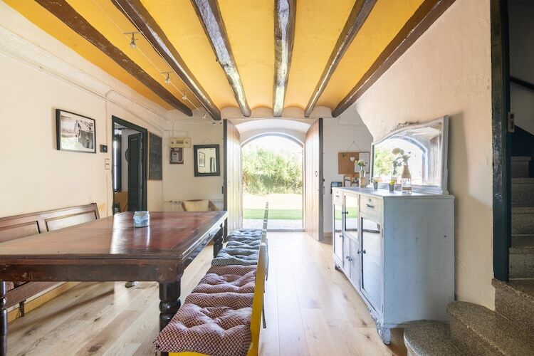 Le gîte Can Teulera est une authentique masía située dans un cadre calme, dans la célèbre région vinicole de Penedés, sur la Costa del Garraf. Il fait partie dun groupe de 5 masías, est entouré de vignes et dispose d'un grand jardin avec piscine ronde (5 mètres de diam., 1,20m de prof.). Les enfants pourront donc jouer dans le jardin, au soleil ou à lombre des oliviers, des amandiers et des figuiers séculaires qui confèrent beaucoup de charme à la masía. Il vous sera même possible d'aller visiter quelques bodegas (caves à vin) de viticulteurs réputés à 1 km. Les alentours se prêtent à merveille aux promenades pédestres ou cyclistes. Le célèbre village de Sitges et ses superbes plages sont à 25 km. Dautres sites touristiques intéressants dans les environs sont, entre autres, le parc dattractions Port Aventura (65 km), près de Salou ; le cloître de Montserrat (65 km) ; Barcelone (50 km) et Tarragone (50 km).