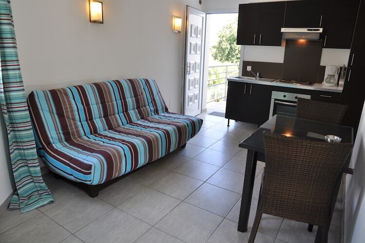 Au 1er étage: (cuisine ouverte(four, micro ondes), salle à manger-salon(canapé-lit double, TV), chambre(lit double), salle de bains(douche, lavabo, WC), parking) chauffage(électrique), climatisation, jardin(partagé avec d'autres clients), mobilier de jardin, piscine(partagé avec d'autres clients, 12 x 7 m., ouvert de Mai jusqu'à (inclus) Oct), équipements de jeux, tennis de table/ping-pong