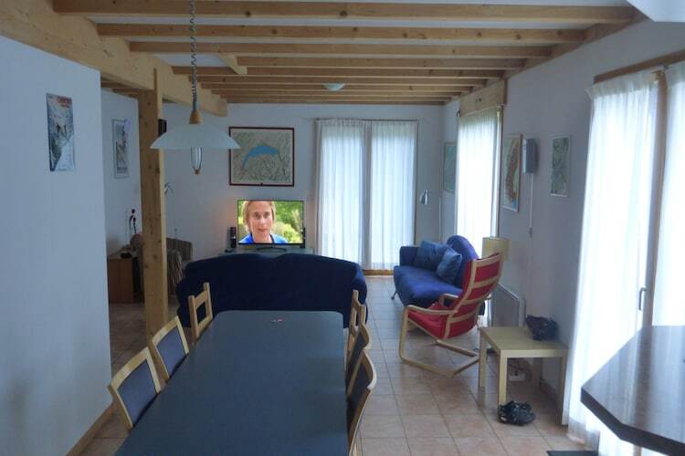 Rez-de-chaussée: (hall d'entrée, Salle de séjour(TV, table, Lecteur DVD, radio), cuisine ouverte(cafetière/percolateur(cups), four, micro ondes, lave-vaisselle , combinaison réfrigérateur/congélateur), chambre(lit double), salle de bains(douche, lavabo, WC)) Au 1er étage: (chambre(2x lit simple), chambre(2x lit simple), chambre(2x lit simple), salle de bains(baignoire, douche, lavabo, WC)) garde-skis, Lecteur DVD, lave-linge , chauffage(électrique), terrasse, mobilier de jardin, lit d'enfant, chaise haute
