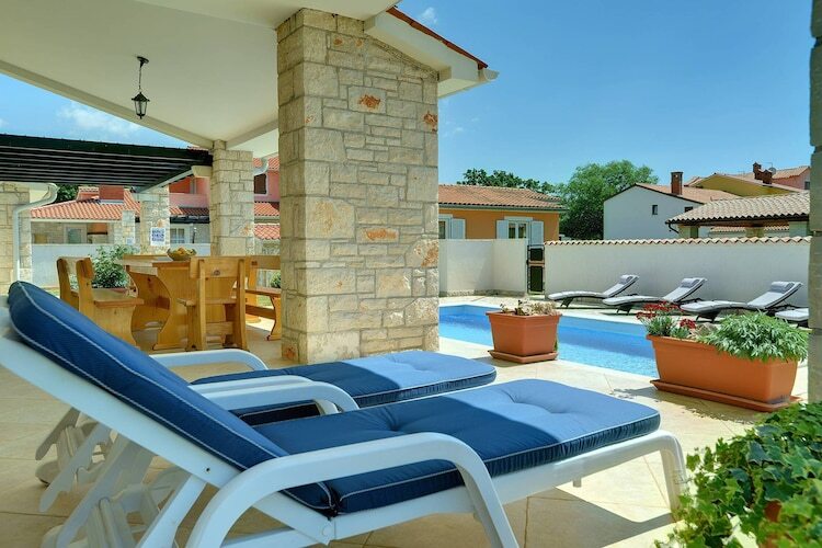 Cette villa de 4 chambres à Vodnjan peut accueillir 9 personnes et est idéale pour un groupe ou une famille avec des enfants. Il y a une piscine privée et la climatisation confort.