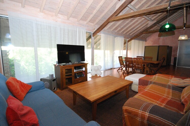 Rez-de-chaussée: (Salle de séjour(canapé-lit double, cheminée), cuisine ouverte(plaque de cuisson(4 foyers, gaz), four, micro ondes, lave-linge ), chambre avec salle de bains(lit double(130 x 180 cm), douche, lavabo, WC)) Au 1er étage: (Salle de séjour(TV, coin salon, Lecteur DVD), chambre en enfilade(lit double), salle de bains(douche, lavabo, WC)) douche(extérieur), lave-linge , balcon, chauffage, terrasse(couverte), jardin, mobilier de jardin, barbecue, piscine(privé, 8 x 4 m., ouvert de Mai jusqu'à (inclus) Oct), billard, appareils de fitness, lit d'enfant, chaise haute