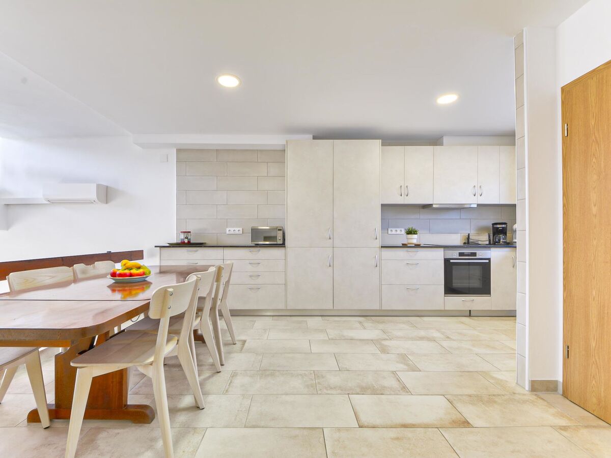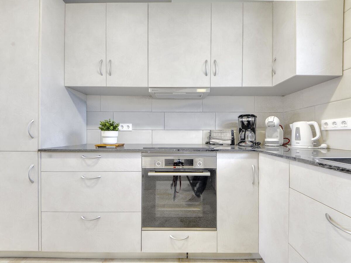 Cuisine ouverte (four, lave-vaisselle, 4 plaques vitrocéramiques, grille-pain, bouilloire électrique, micro-ondes, congélateur, cafetière électrique, Capsules pour machine à café (Dolce Gusto)).