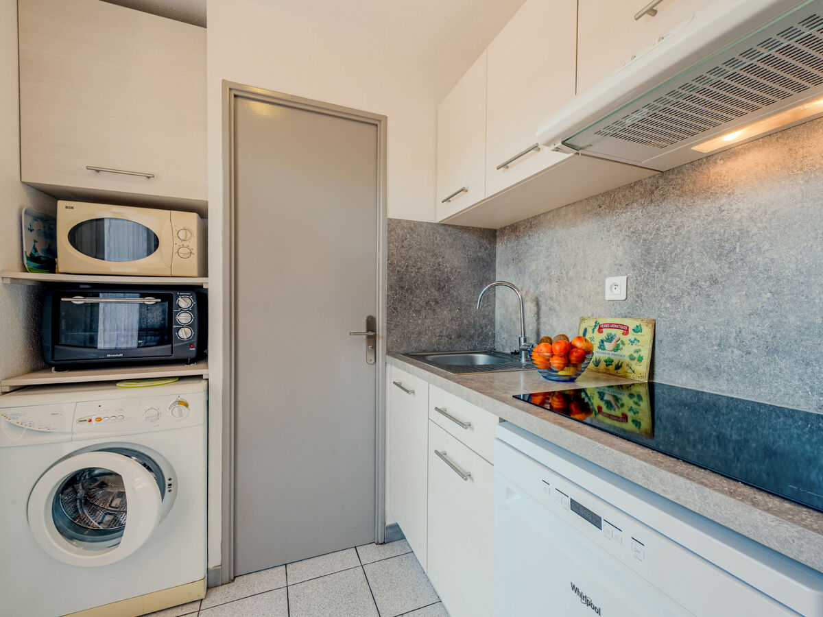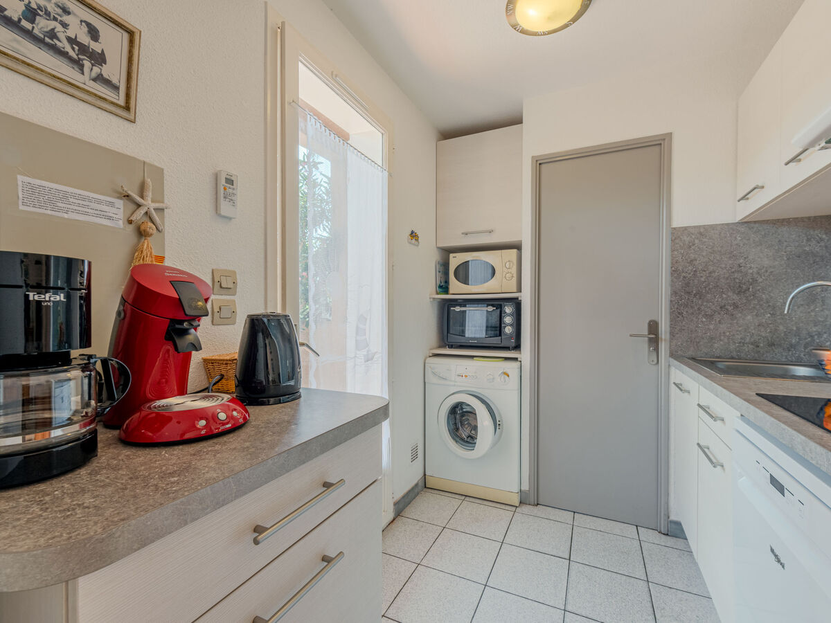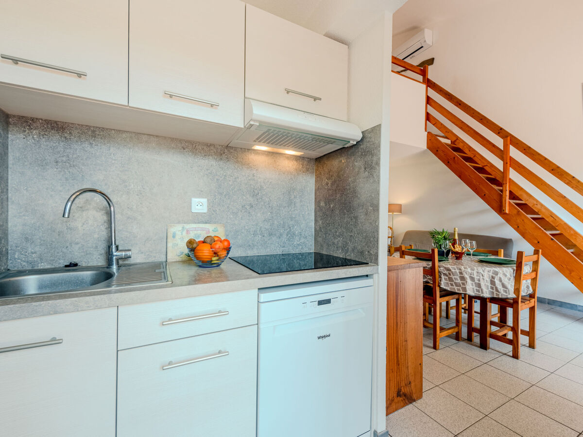 Coin cuisine (3 plaques de cuisson, four, lave-vaisselle, micro-ondes, congélateur).
