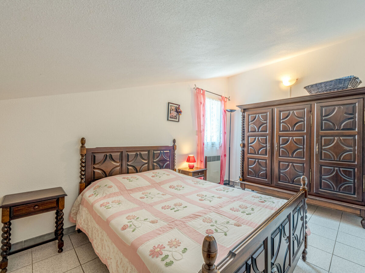 À l'étage supérieur: 1 chambre avec 1 grand-lit (140 cm, longueur 190 cm), ventilateur.