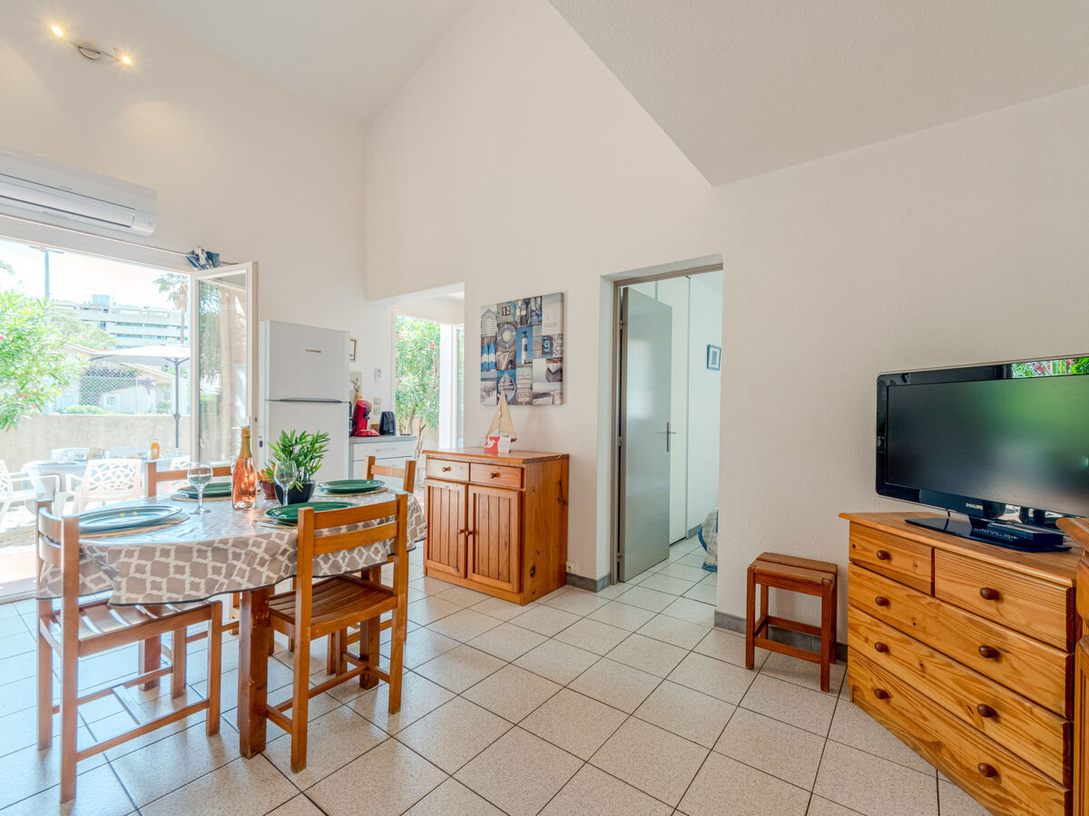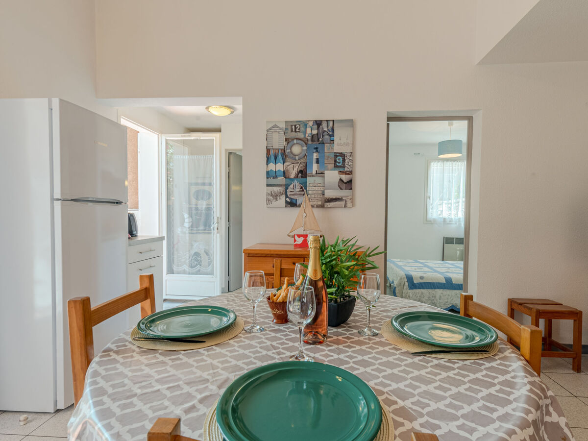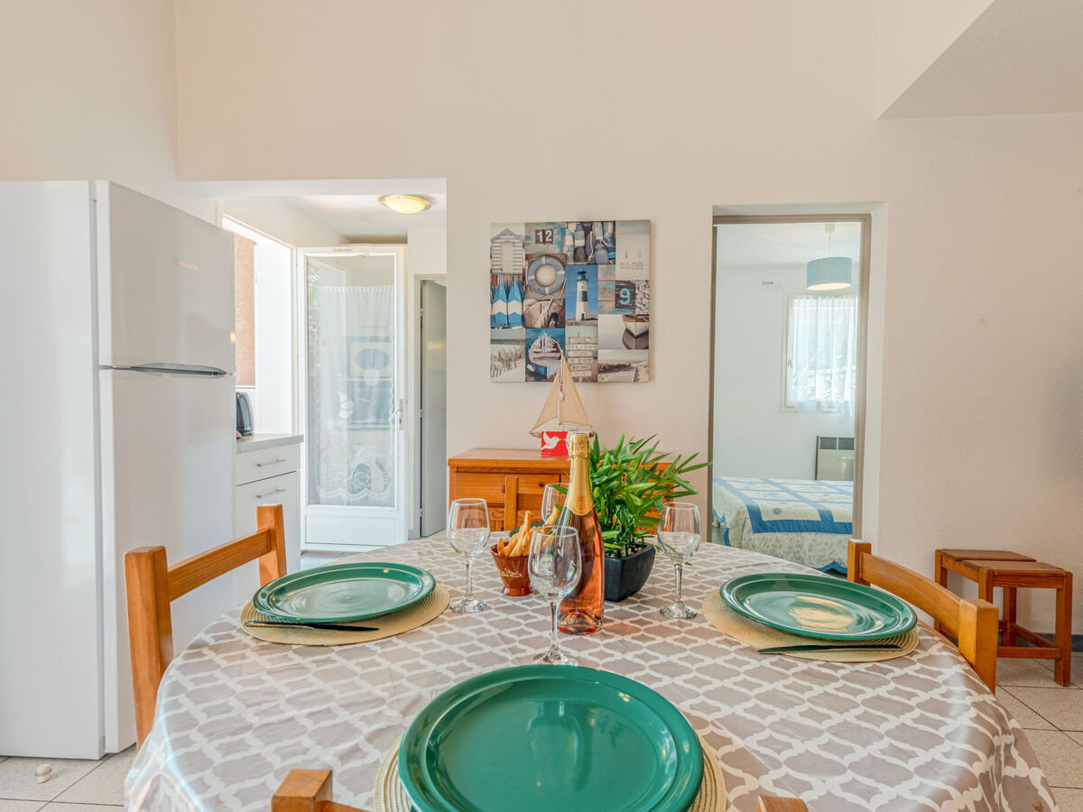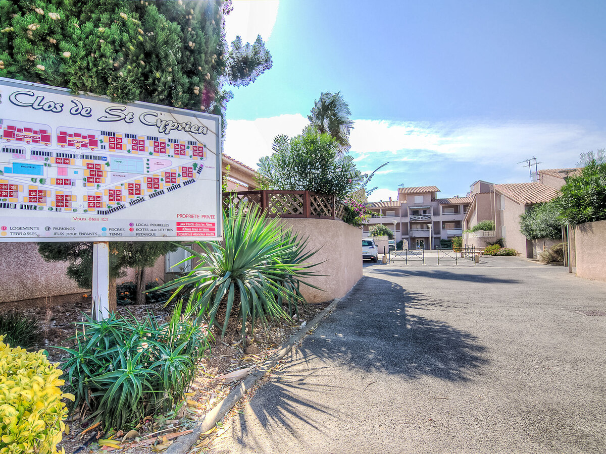 Au centre de Saint Cyprien Port, situation centrale, animée, à 500 m de la mer, à 500 m de la plage, sur une route principale.