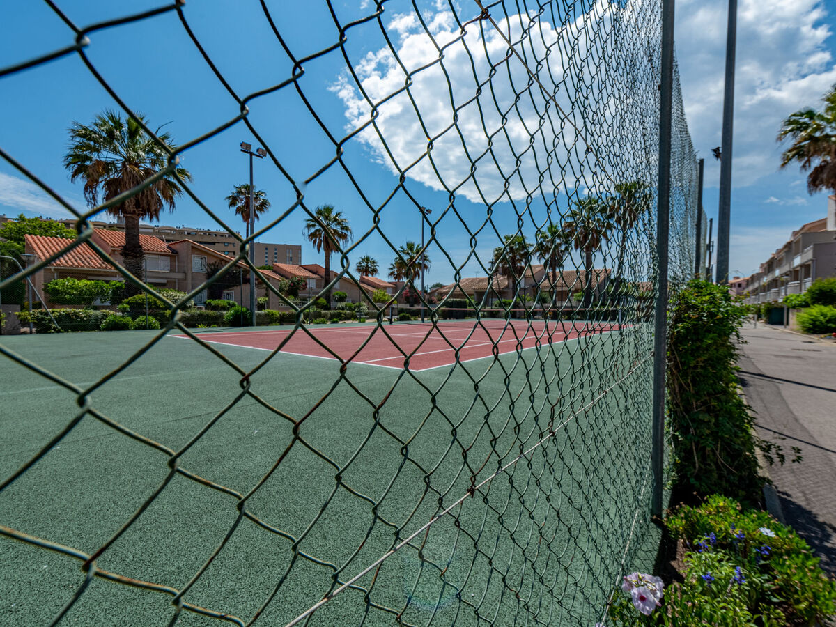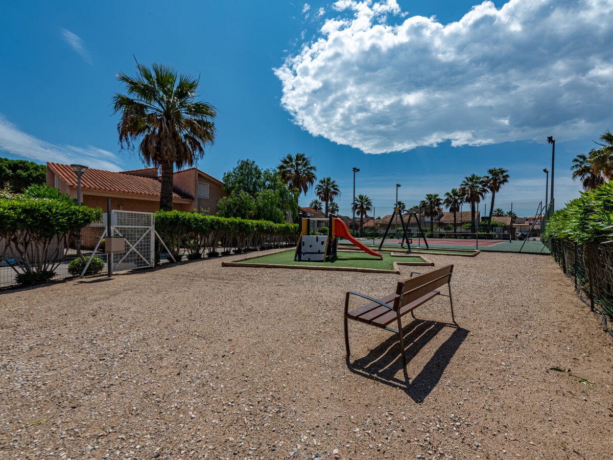 Bassin pour les enfants, tennis, espace de jeux pour les enfants.