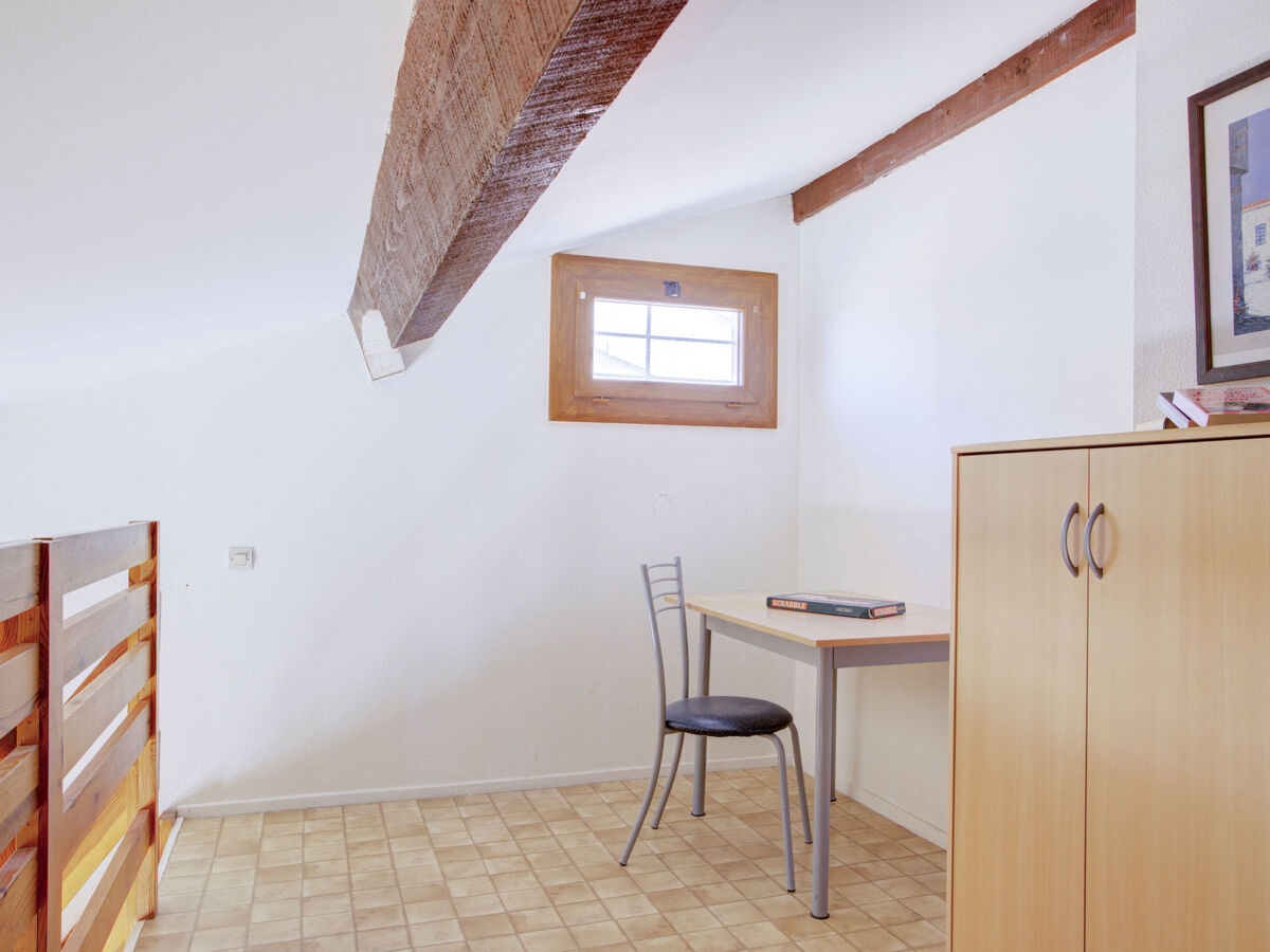 À l'étage supérieur: (escalier raide) galerie mansardée avec 2 lits (90 cm, longueur 190 cm).