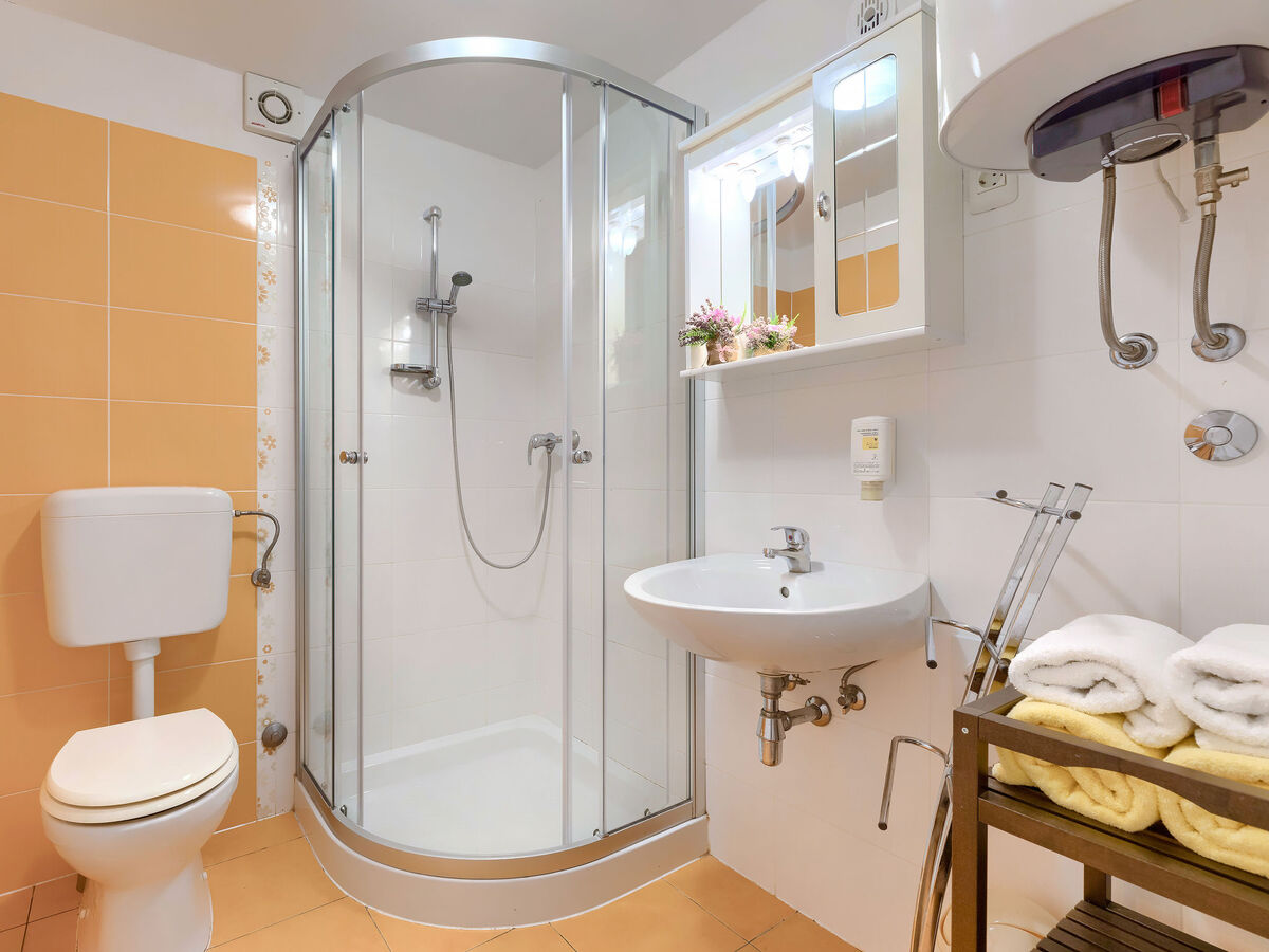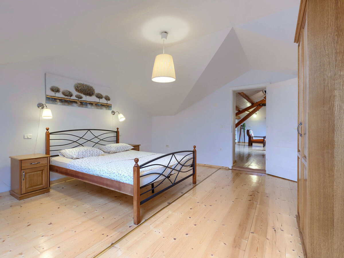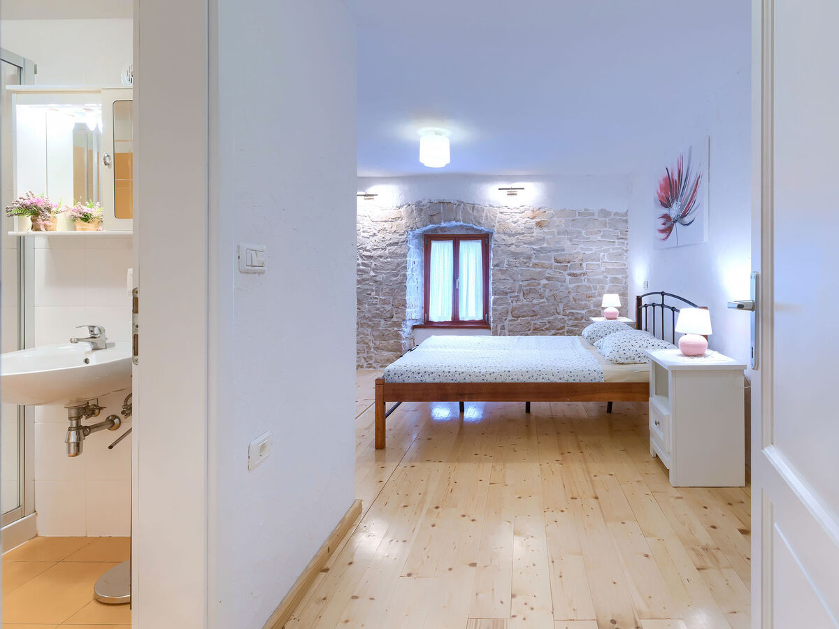 1 chambre avec 1 lit double (2 x 80 cm, longueur 200 cm), douche/WC.
