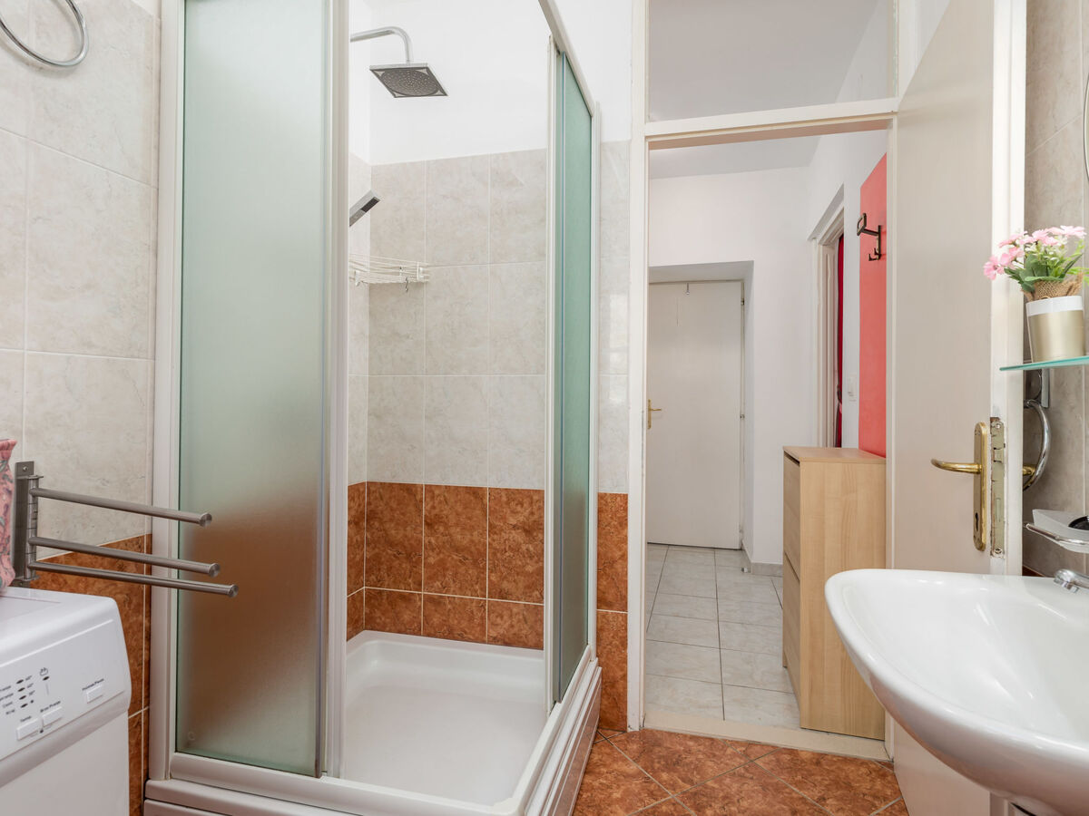 Chambre avec passage avec 1 grand-lit (160 cm, longueur 200 cm), douche/bidet/WC et air-conditionné.
