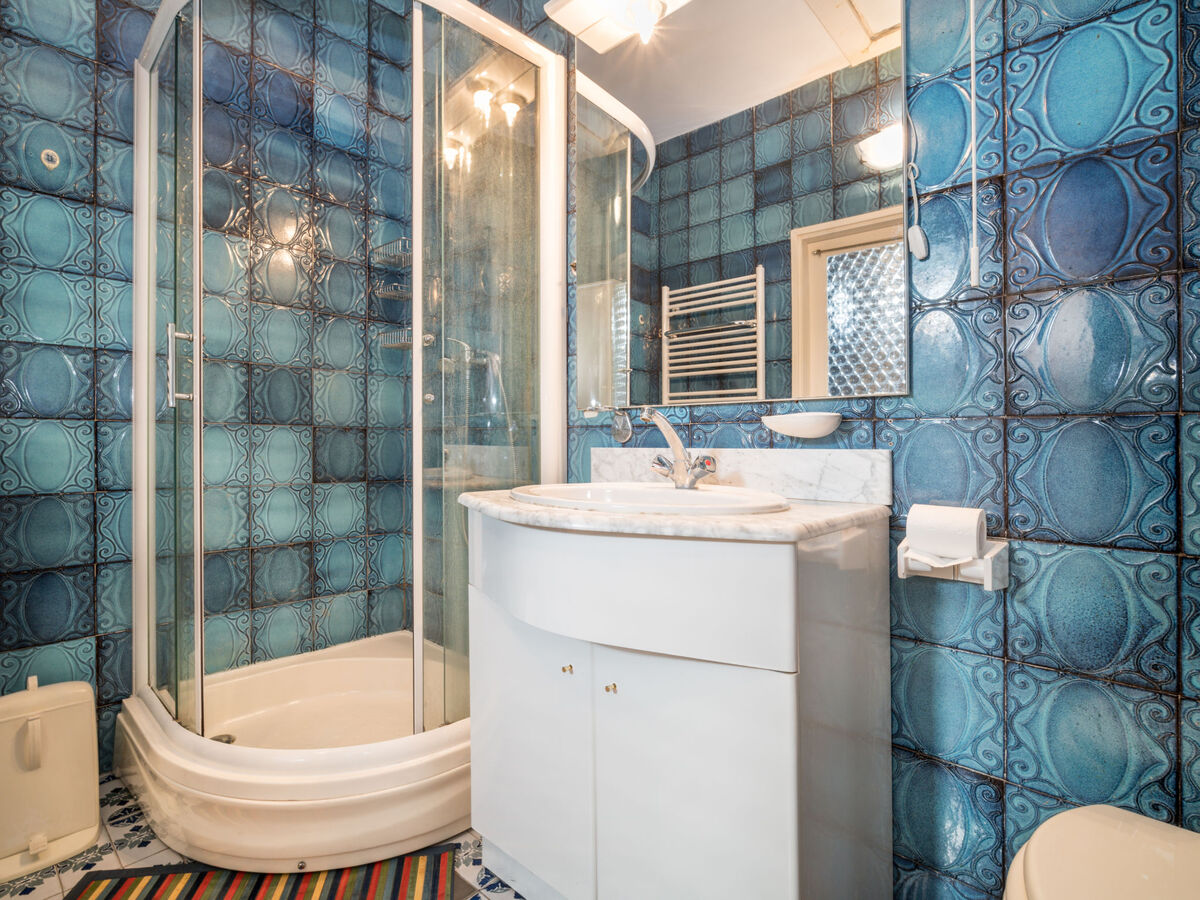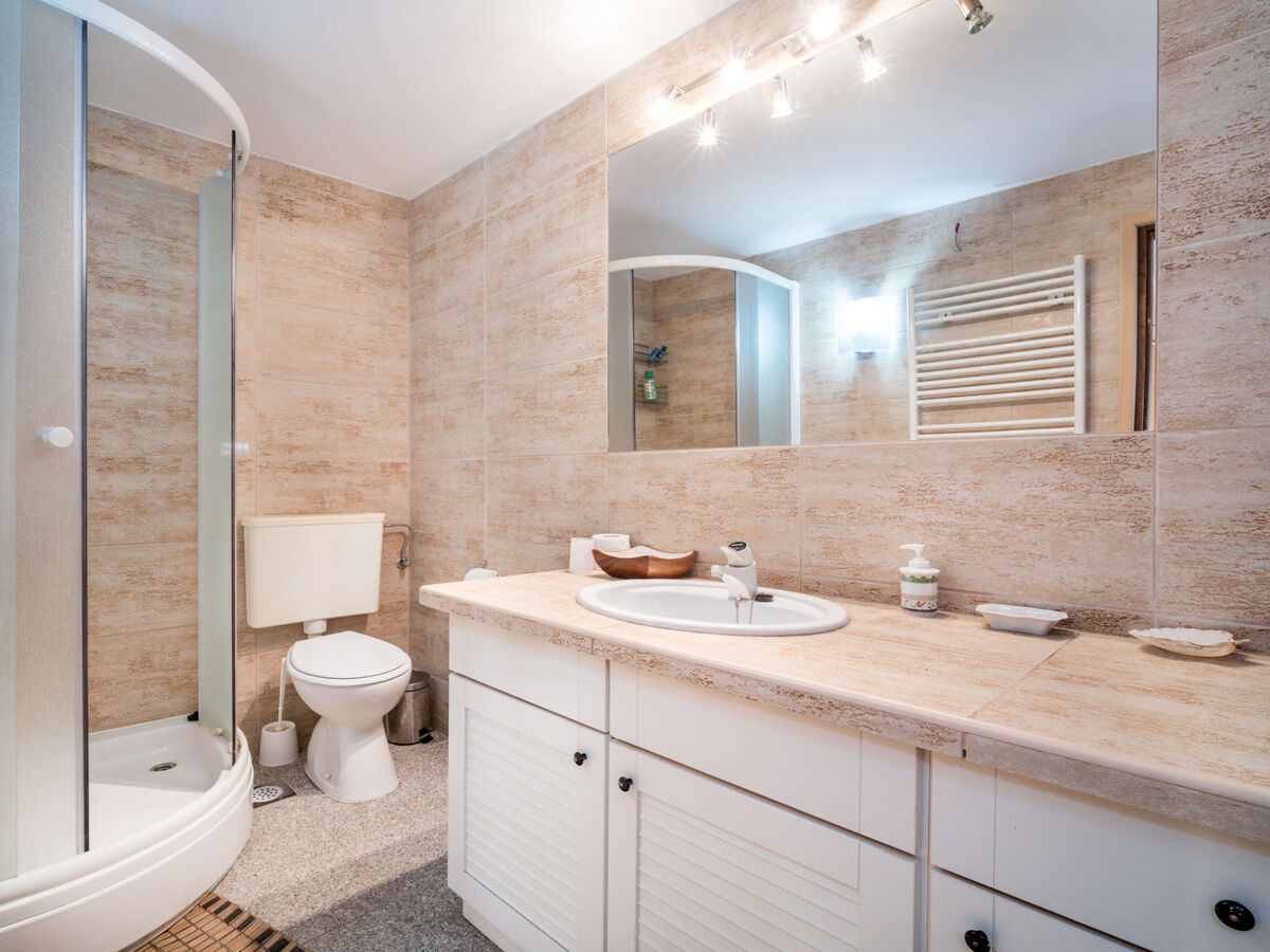 À l'étage supérieur: (escalier extérieur) 2 chambres, chaque chambre avec: 1 grand-lit (160 cm, longueur 200 cm), douche/WC et air-conditionné.