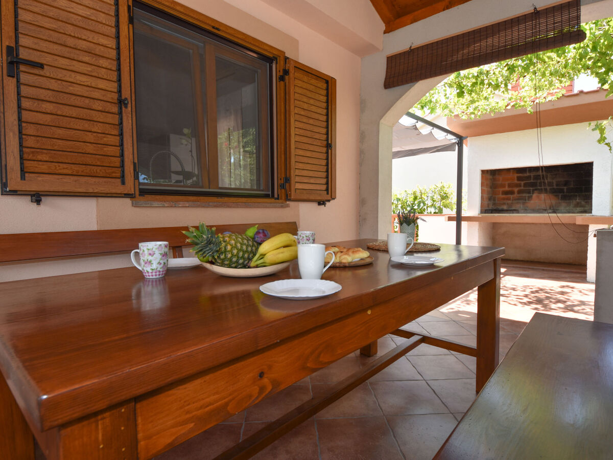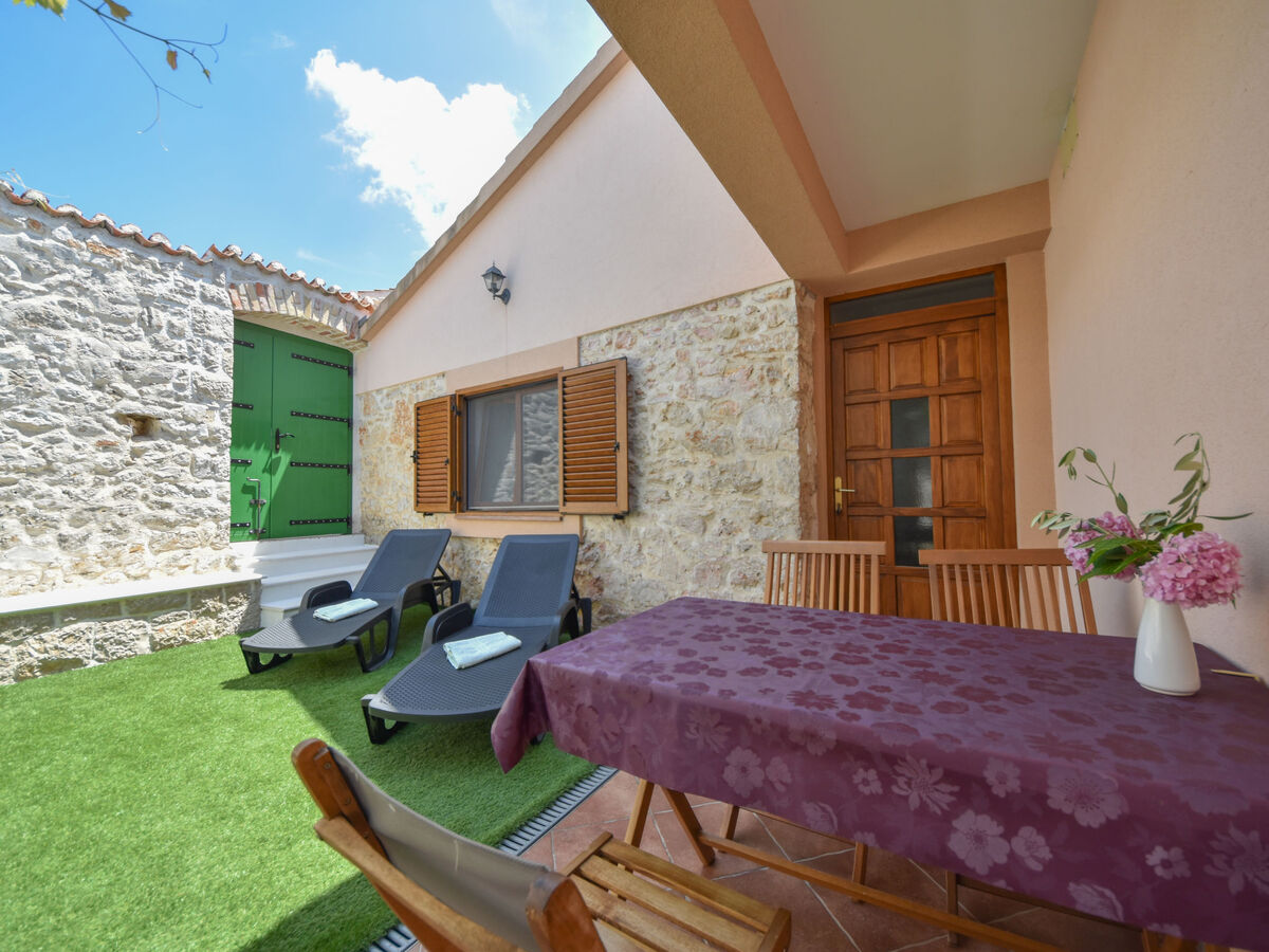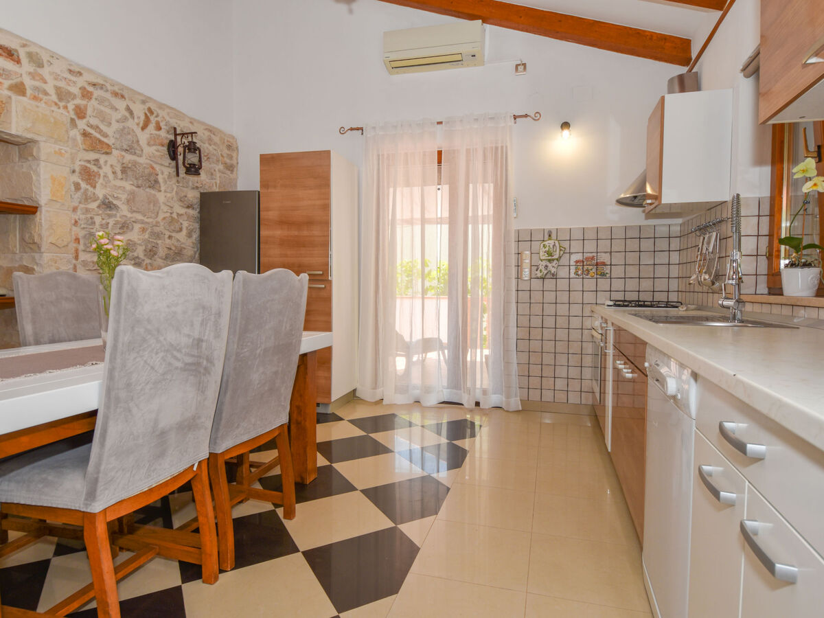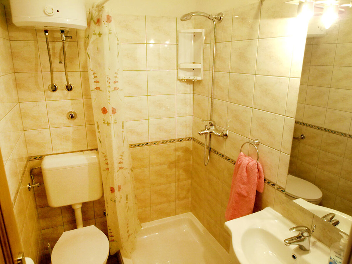 Séjour/salle à manger avec 1 divan-lit double (140 cm, longueur 200 cm), coin-cuisine, TV (satellite) et air-conditionné.