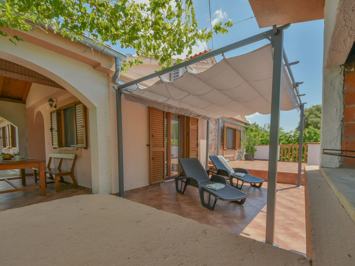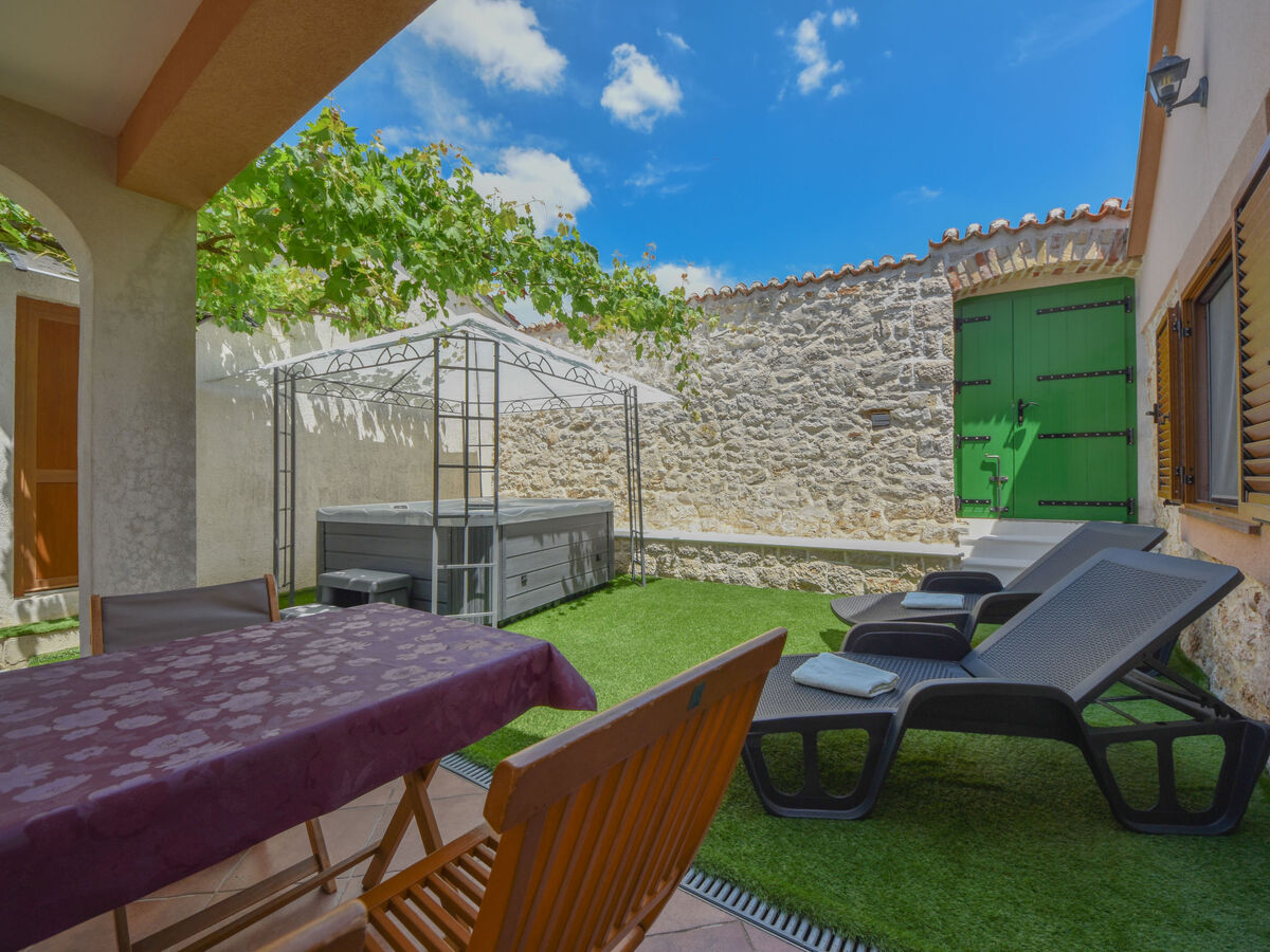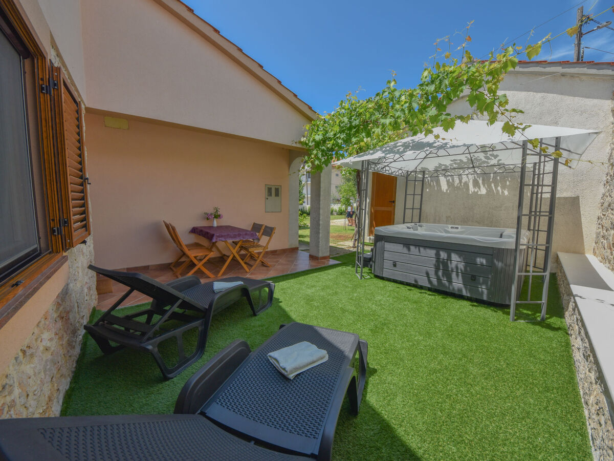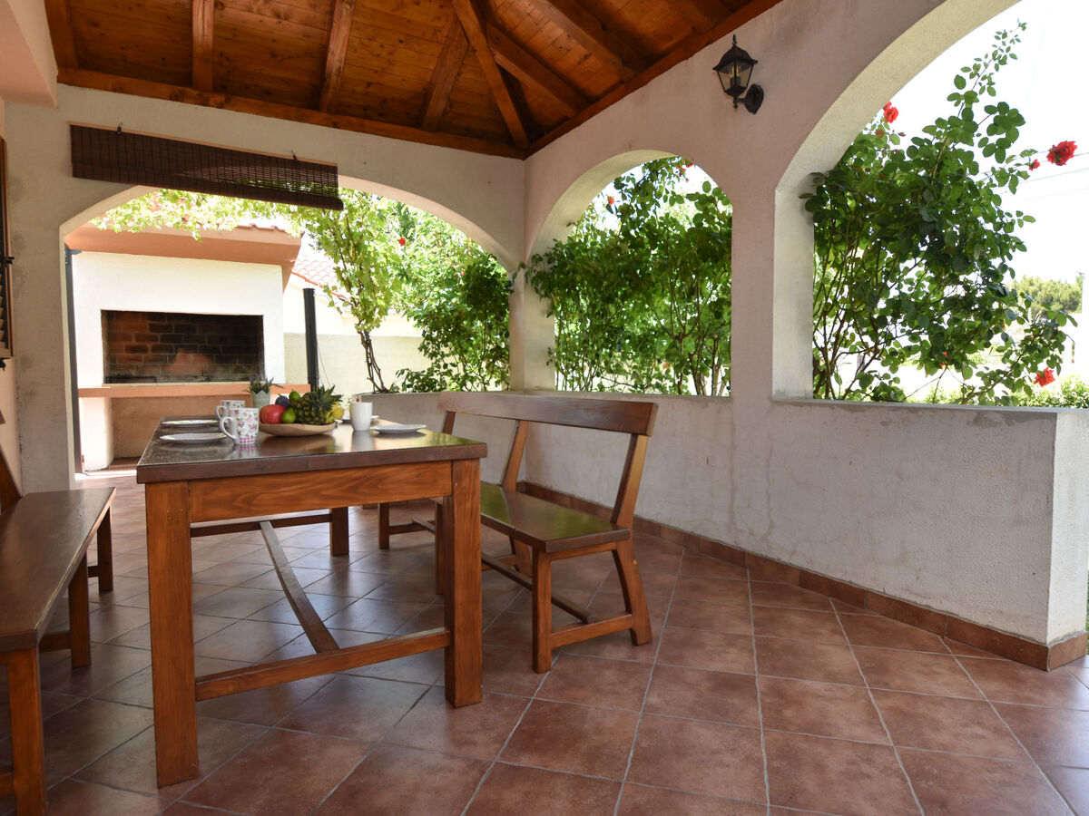 Séjour/salle à manger avec 1 divan-lit double (140 cm, longueur 200 cm), coin-cuisine, TV (satellite) et air-conditionné.