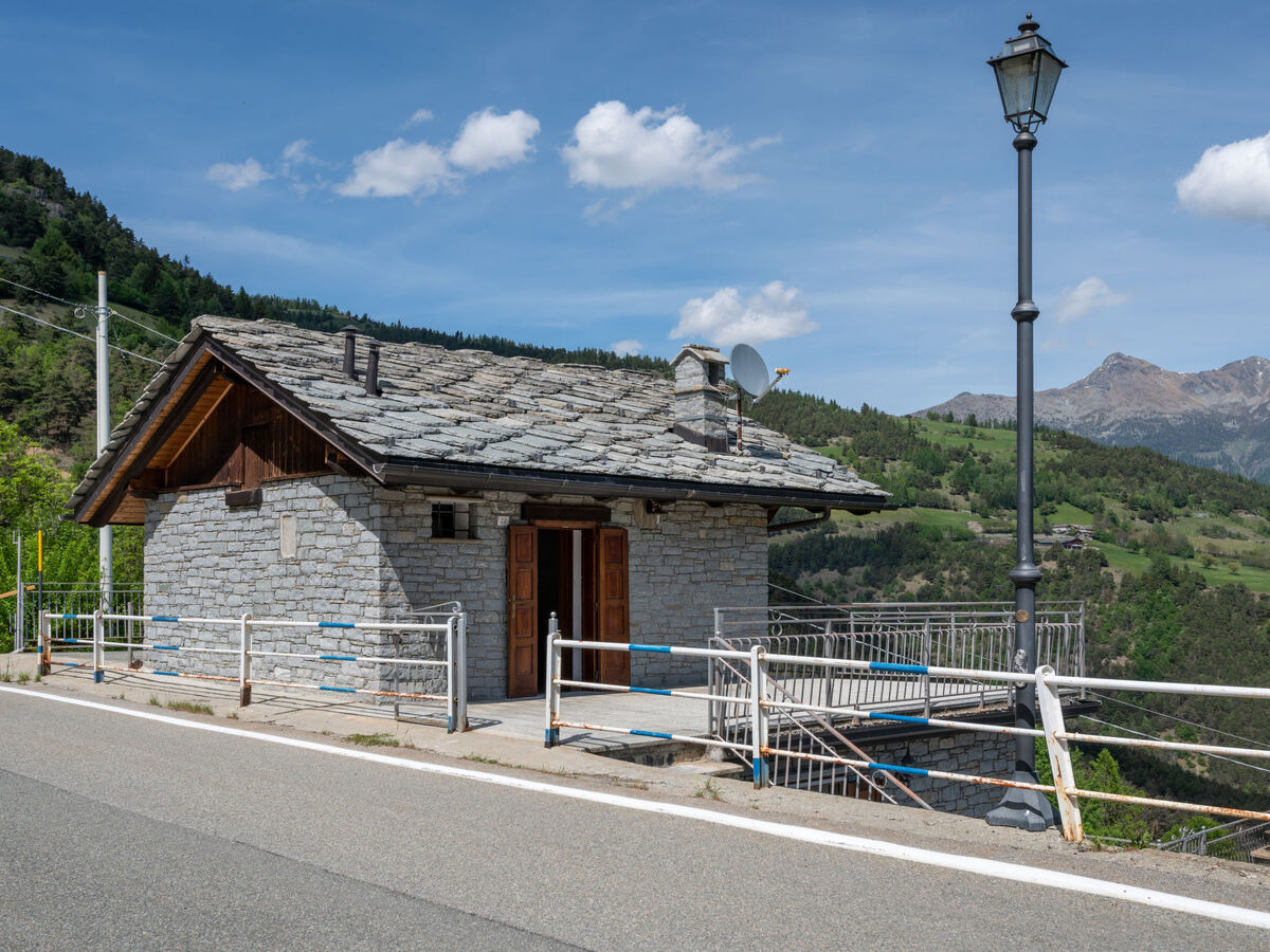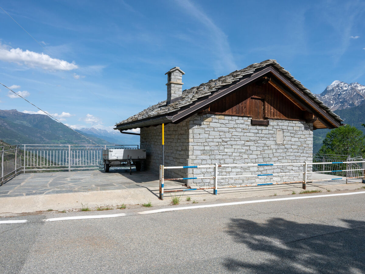 Dans le hameau de Conclonaz, à 9 km du centre de Sarre, à 12 km du centre d'Aosta, situation tranquille, ensoleillée, surélevée sur un versant, juste au bord de la forêt, dans une rue.