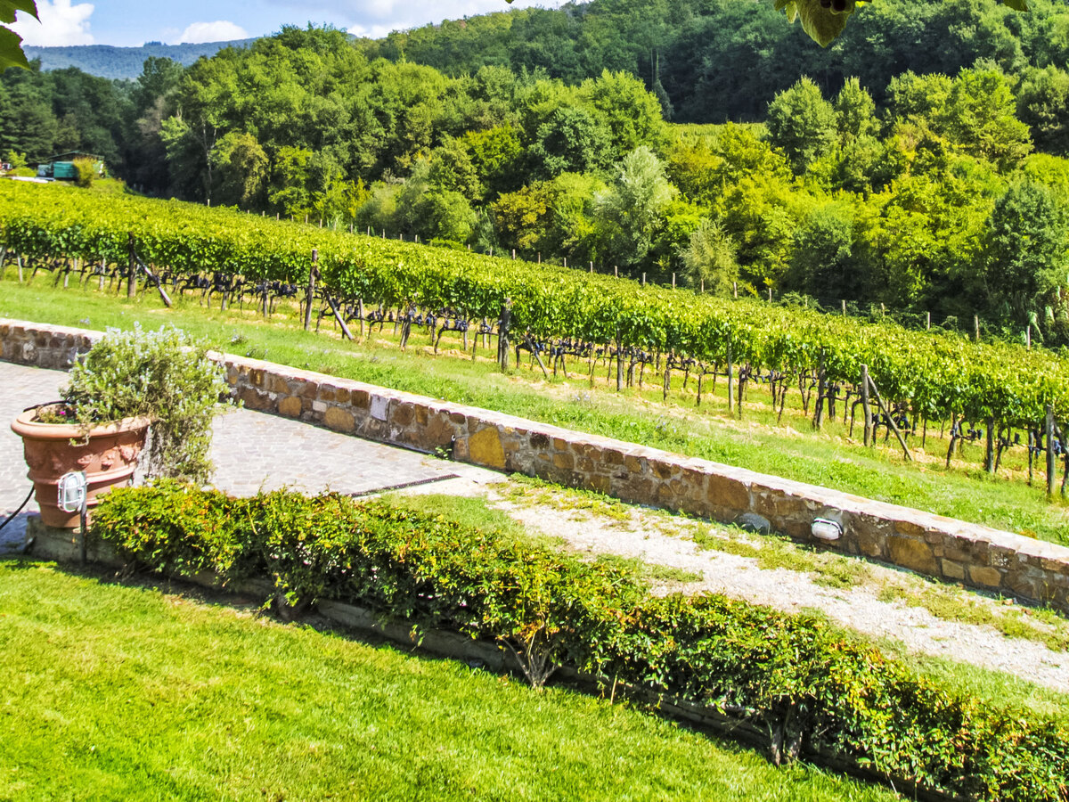 À 2 km du centre de Greve in Chianti, à 20 km du centre de Firenze, sur une colline, dans la verdure.