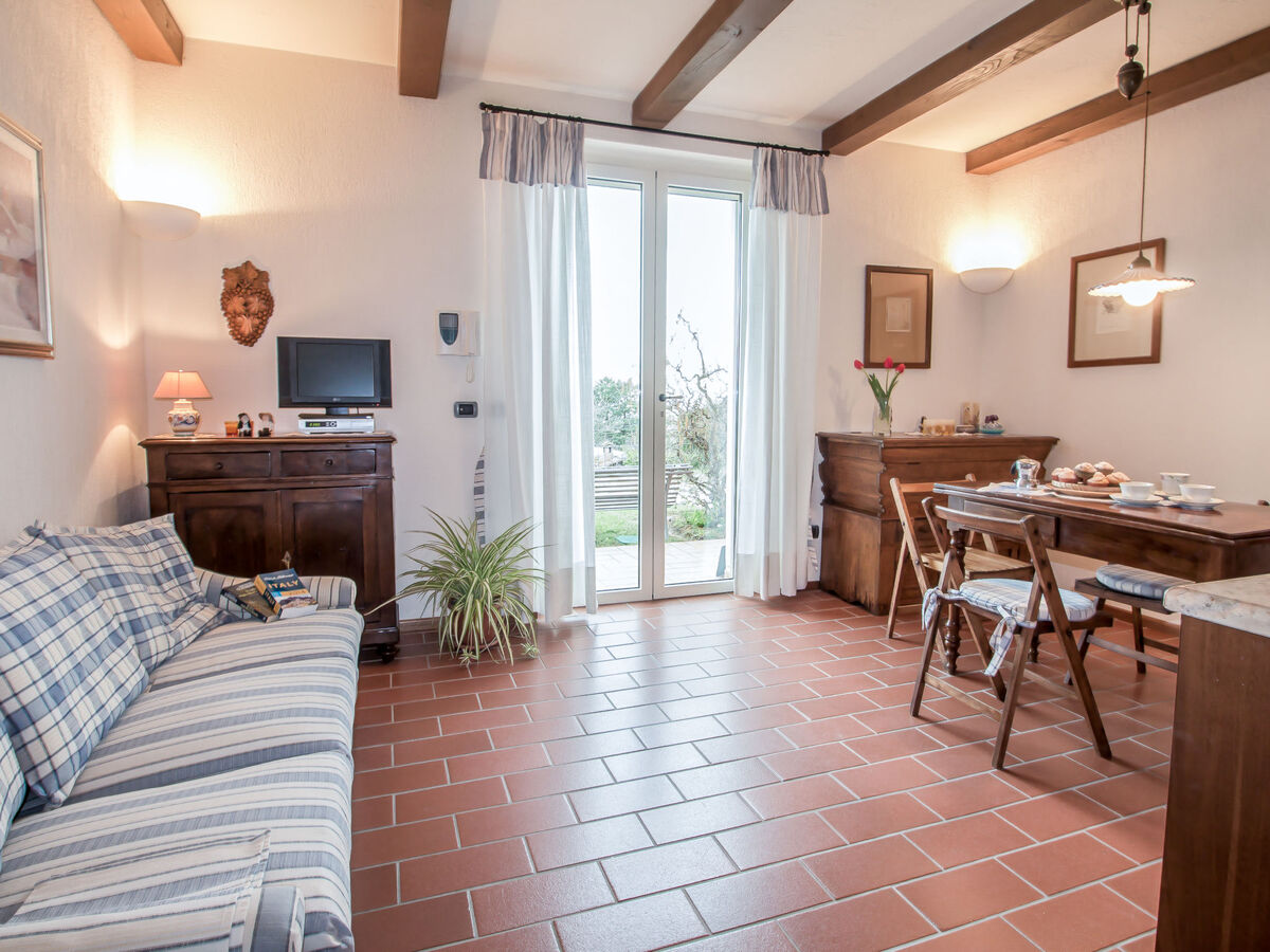 Clair, rénovée, aménagement fonctionnel et de style: séjour avec 1 divan-lit double et TV (satellite).