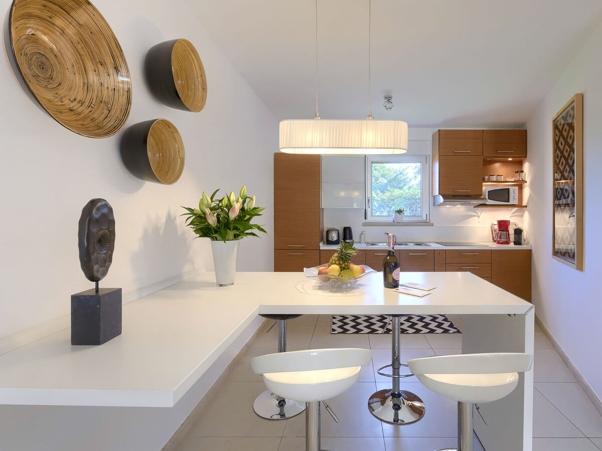 Cuisine ouverte (4 plaques de cuisson, lave-vaisselle, micro-ondes, congélateur).